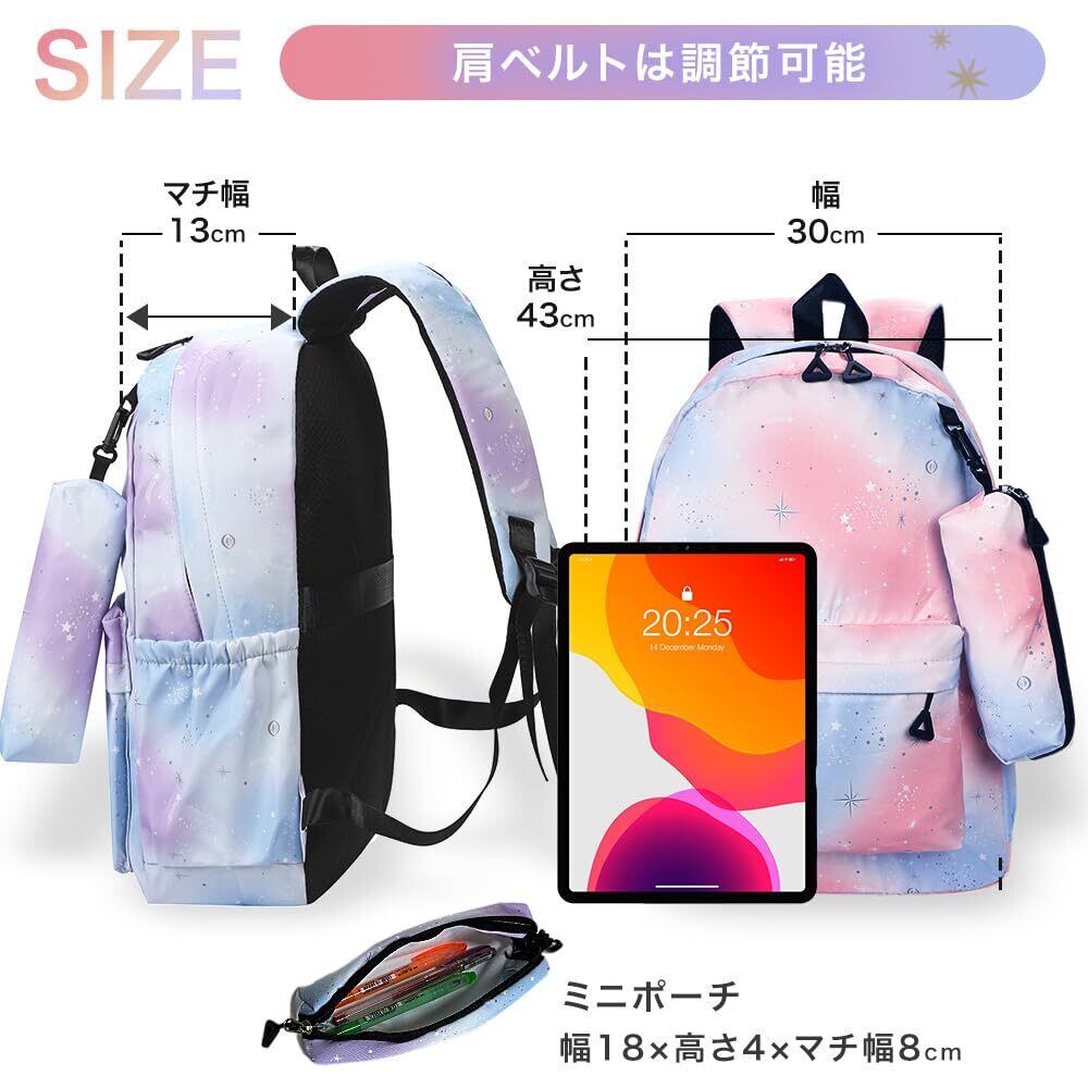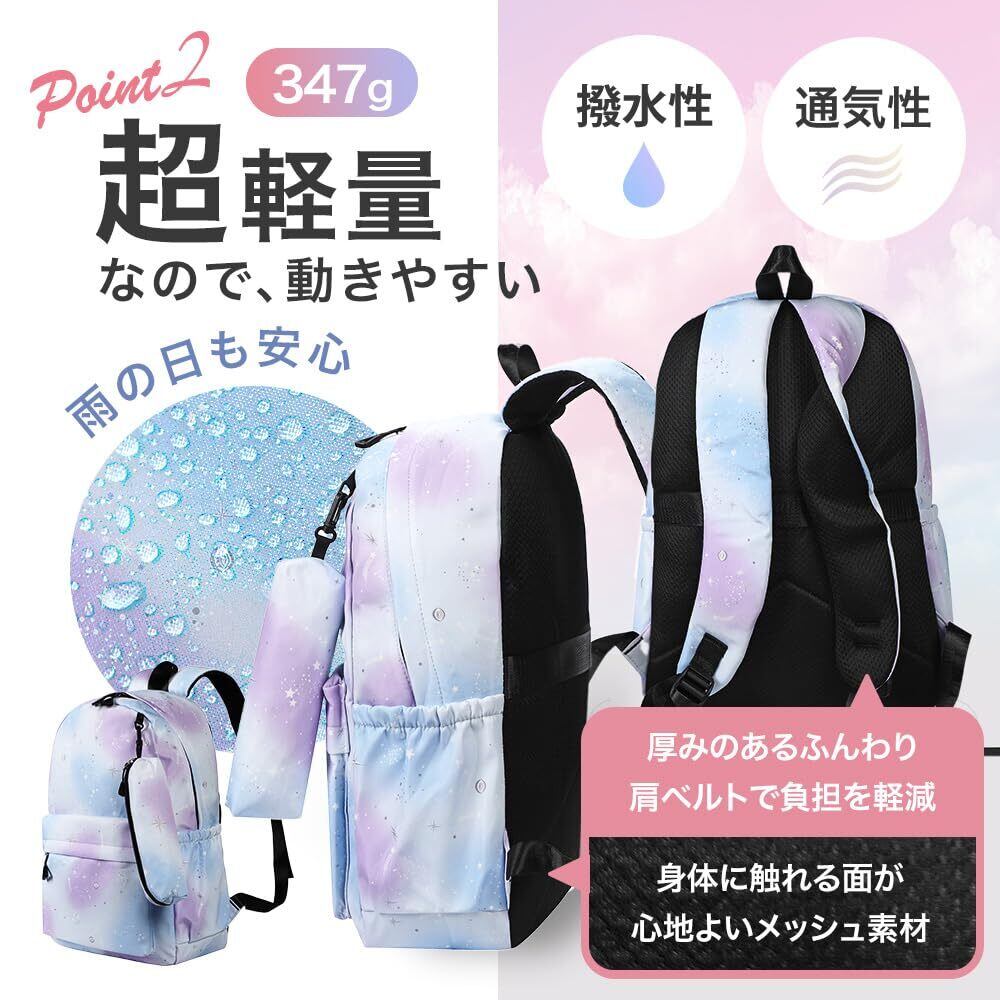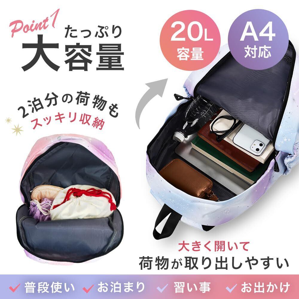 [ルルシア] リュック キッズ 女の子 バッグ 子供 大容量 軽量 撥水 通学 旅行 A4対応 ポーチ付