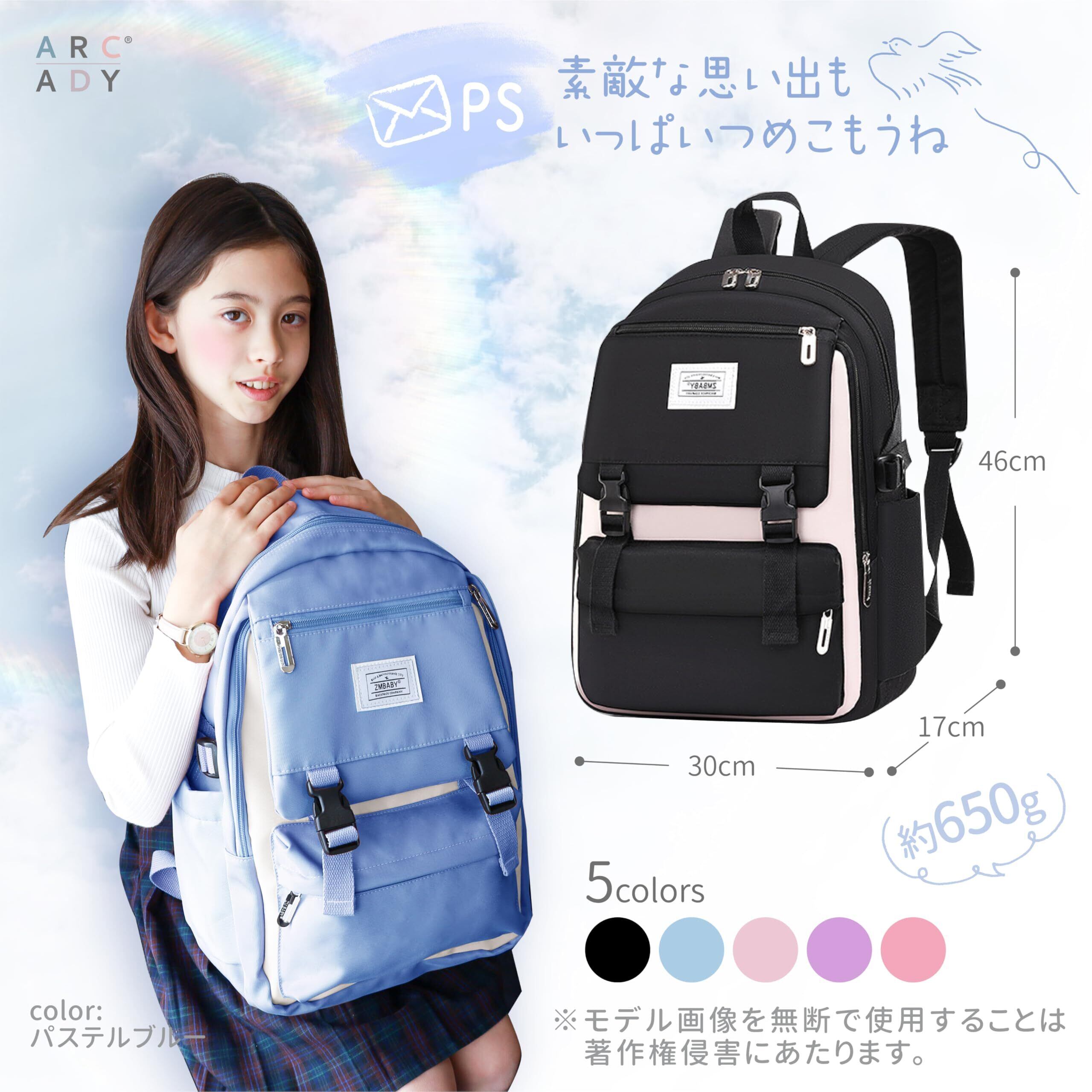 「この[ARCADY] くすみリュックは、女の子のためにデザインされた可愛らしいアイテムです。柔らかなくすみカラーの配色が印象的で、どんなコーディネートにもマッチします。通学はもちろん、遊びにも大活躍の逸品です!」