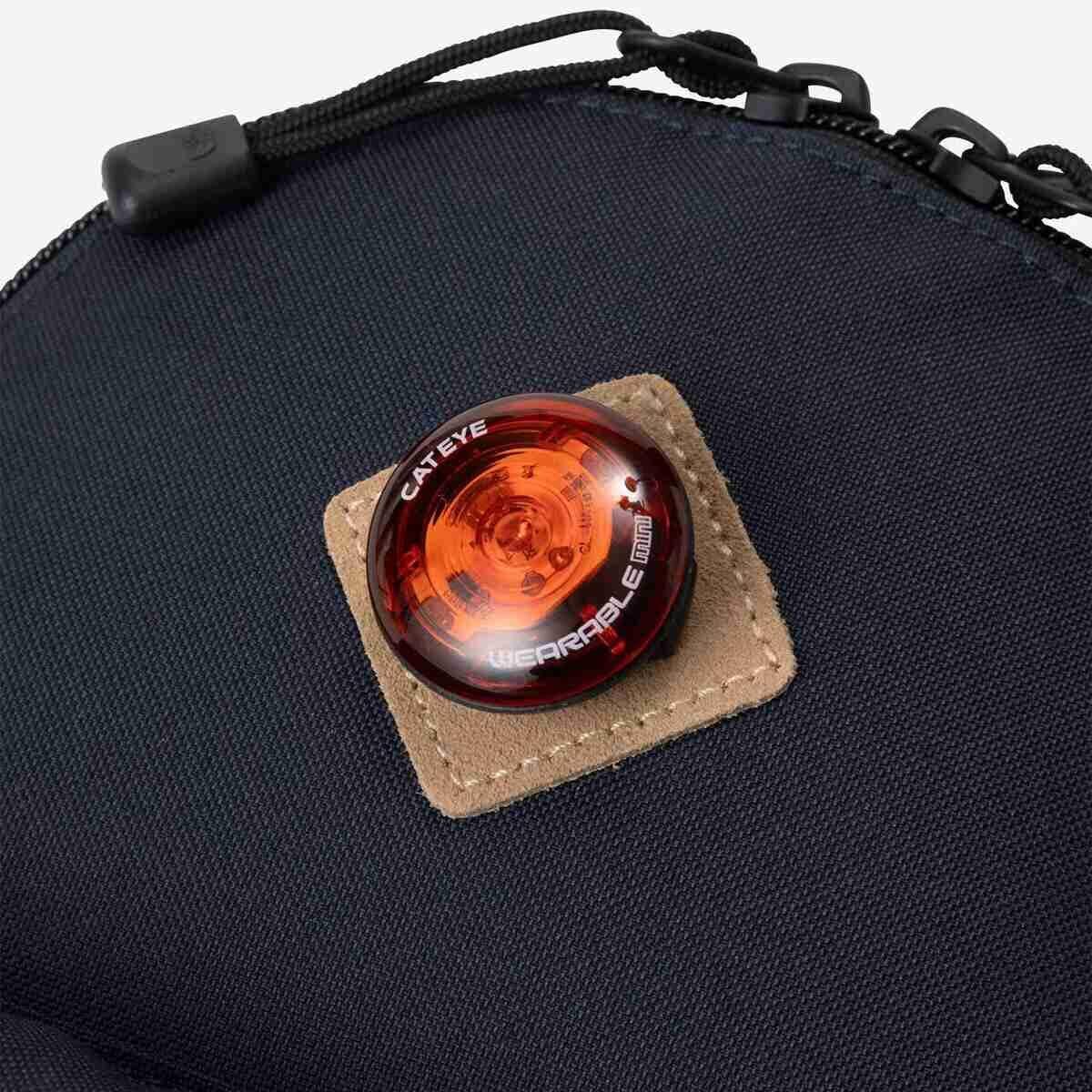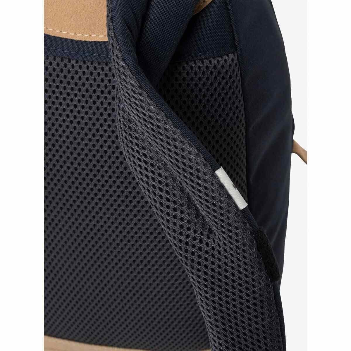 通気性の良いエアメッシュのバックパネルとショルダーハーネス/面ファスナー式のチェストストラップ/大きく開くメインファスナー/内部にメッシュポケット/フロントポケット/リフレクター