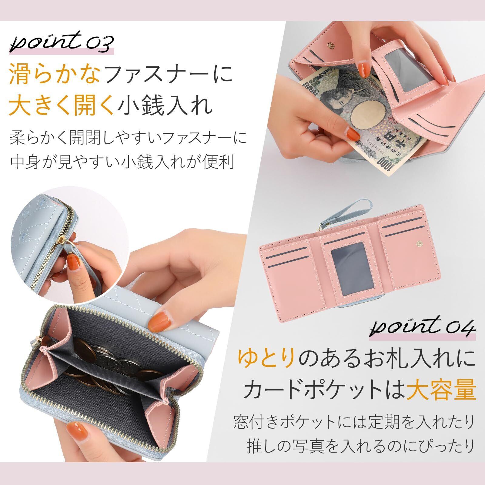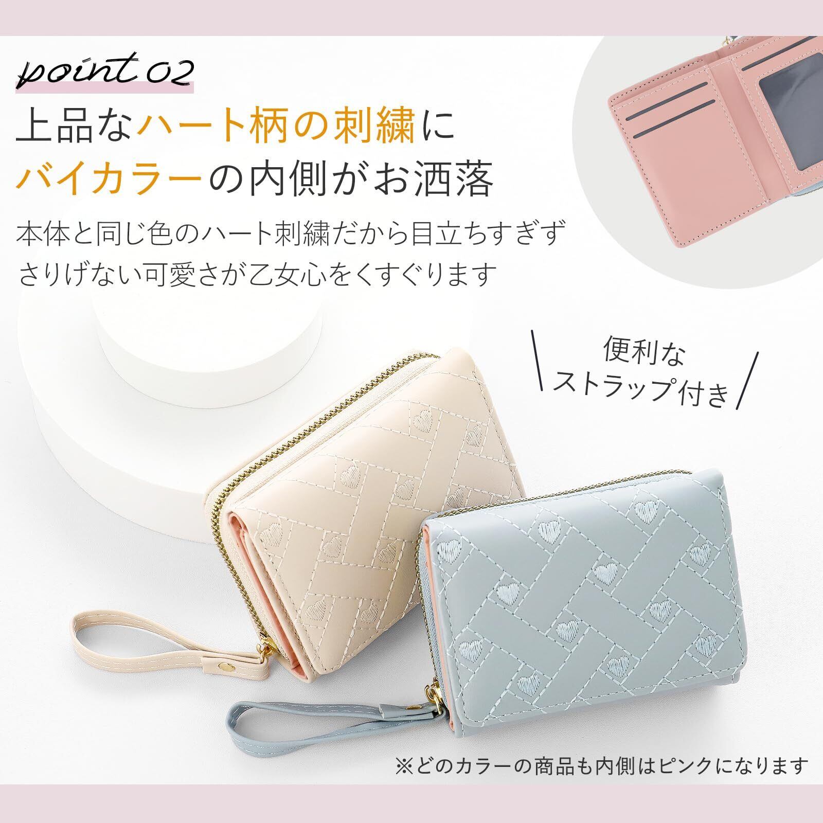 お子様も使いやすい手のひらサイズのコンパクトな三つ折り財布。 乙女心をくすぐる上品なハート柄の刺繍と内側ピンクのバイカラーが、大人っぽさと可愛らしさを両立しています。 スムーズに開け閉めできるなめらかなファスナーで大きく開く小銭入れ。開きやすく取り出しやすいゆとりあるお札入れ。 カードは7枚収納可能で、中央の窓付きポケットは定期入れにも、推しの写真を入れるスペースにもおすすめです