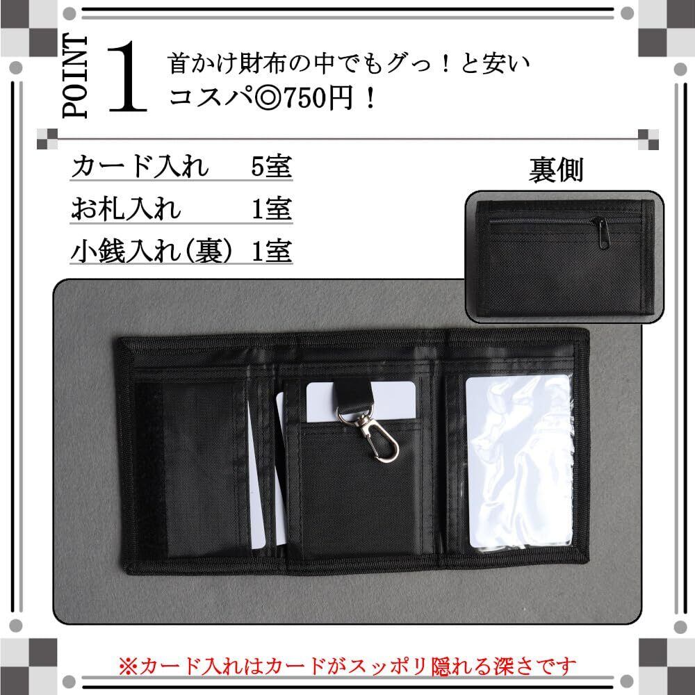- 特徴:三つ折り財布、ストラップ付き、カードポケット、札入れ、小銭入れ