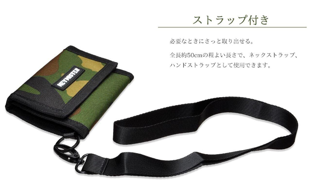 「ウォレット内部には、カード入れがあり、さらに小銭入れも完備。必要なものをスマートに収納できるので、使い勝手も抜群です。また、ストラップがついているので、首掛けで持ち運ぶことができ、子供でも簡単に出し入れが可能です。」