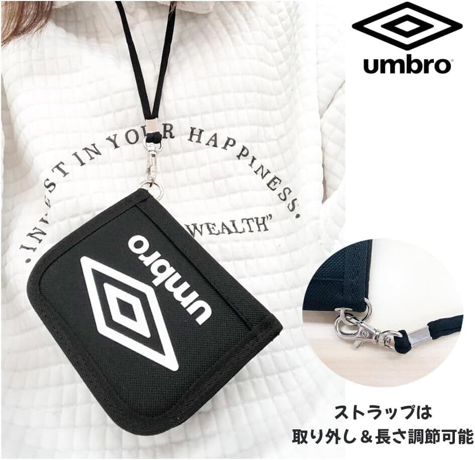 **\[アンブロ] 財布 ストラップ付き 2つ折り財布 二つ折り財布 札入れ 小銭入れ ラウンドファスナー 斜めロゴ 落下防止 男の子 女の子 男女兼用 男子 ジュニア キッズ ブラック - あなたのスタイルにぴったりの機能的なアイテム!/**