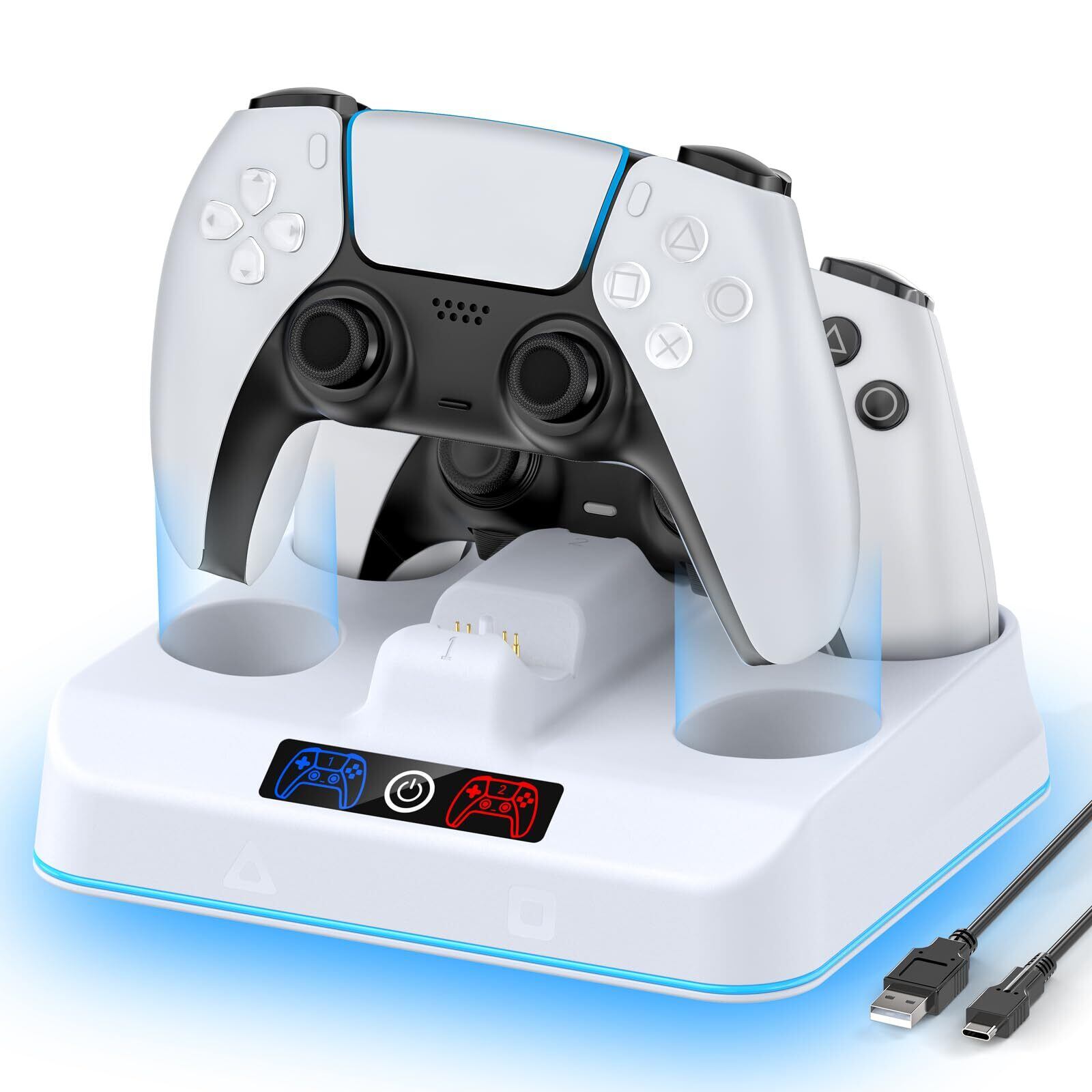 PS5 コントローラー 充電スタンド 2台同時急速充電 置くだけ充電可能 過充電防止 USB-Cケーブル付属 LED指示ランプ付き RGBライトモード変更可能 プレステ5 周辺機器 ホワイト