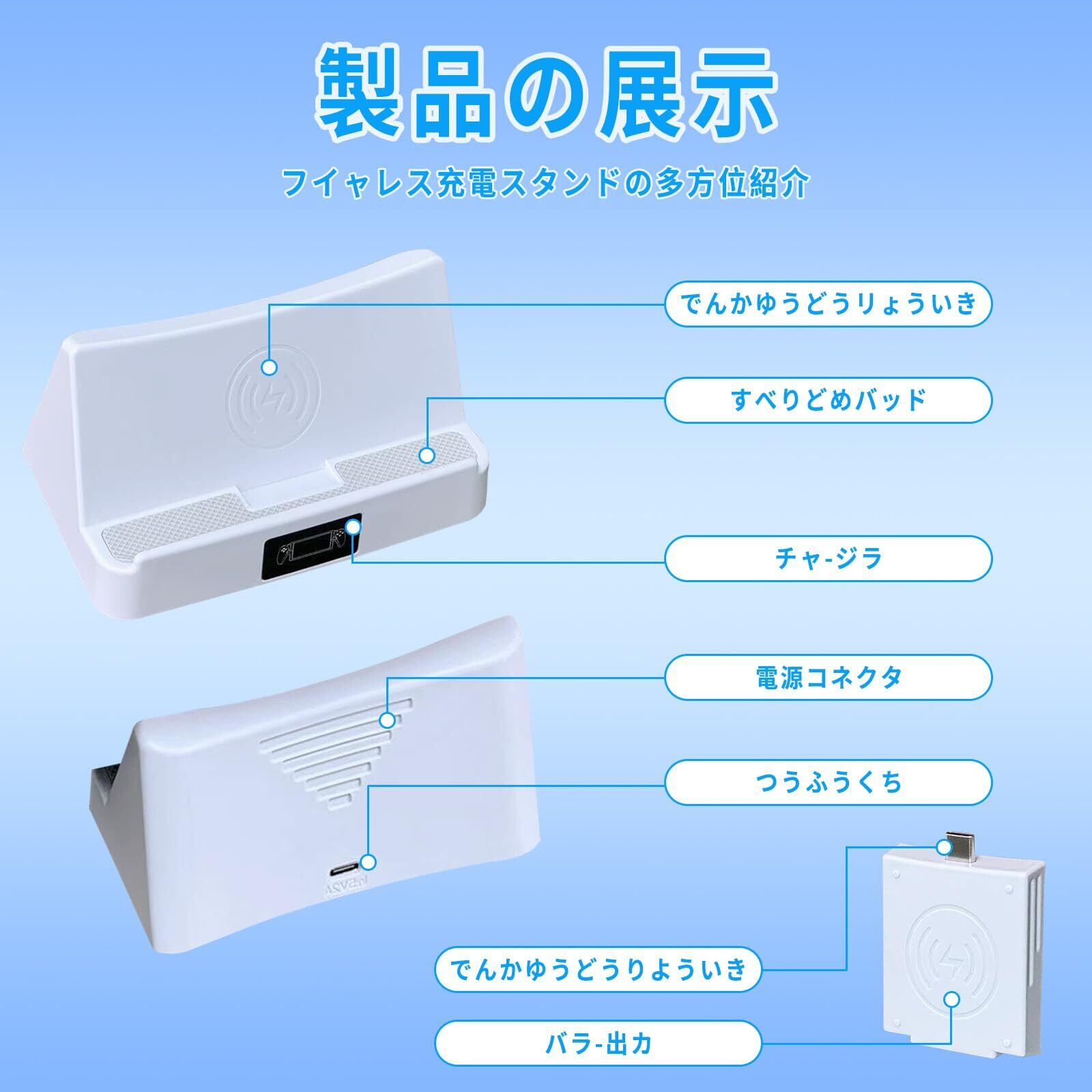 「この充電スタンドには、過充電保護機能が搭載されており、大切なコントローラーを安全に充電できます。インテリジェントな制御機能により、充電環境を整え、安心して長時間使用できる設計です。」