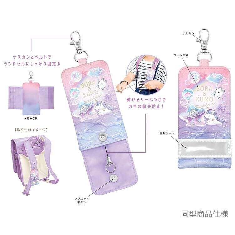ランドセルやリュックに取り付けられるナスカン&ベルト付き。 伸びるリールコードやマグネットボタン付きなど機能性抜群。 夜間でも安心の反射タグ付き。