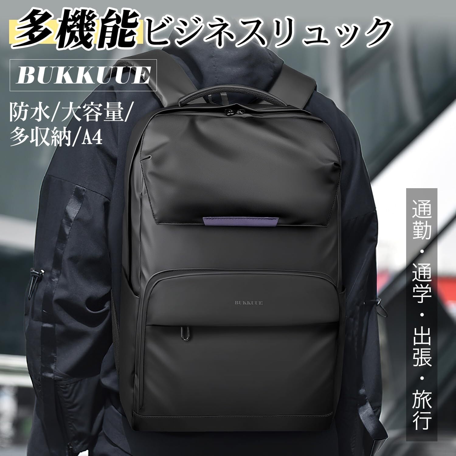 「この[BUKKUUE] リュックは、ビジネスシーンにぴったりの大容量設計です。ノートパソコンや書類、その他の必需品をしっかり収納できるスペースが確保されています。複数のポケットが設けられており、小物の仕分けも簡単で、取り出しもスムーズです。」