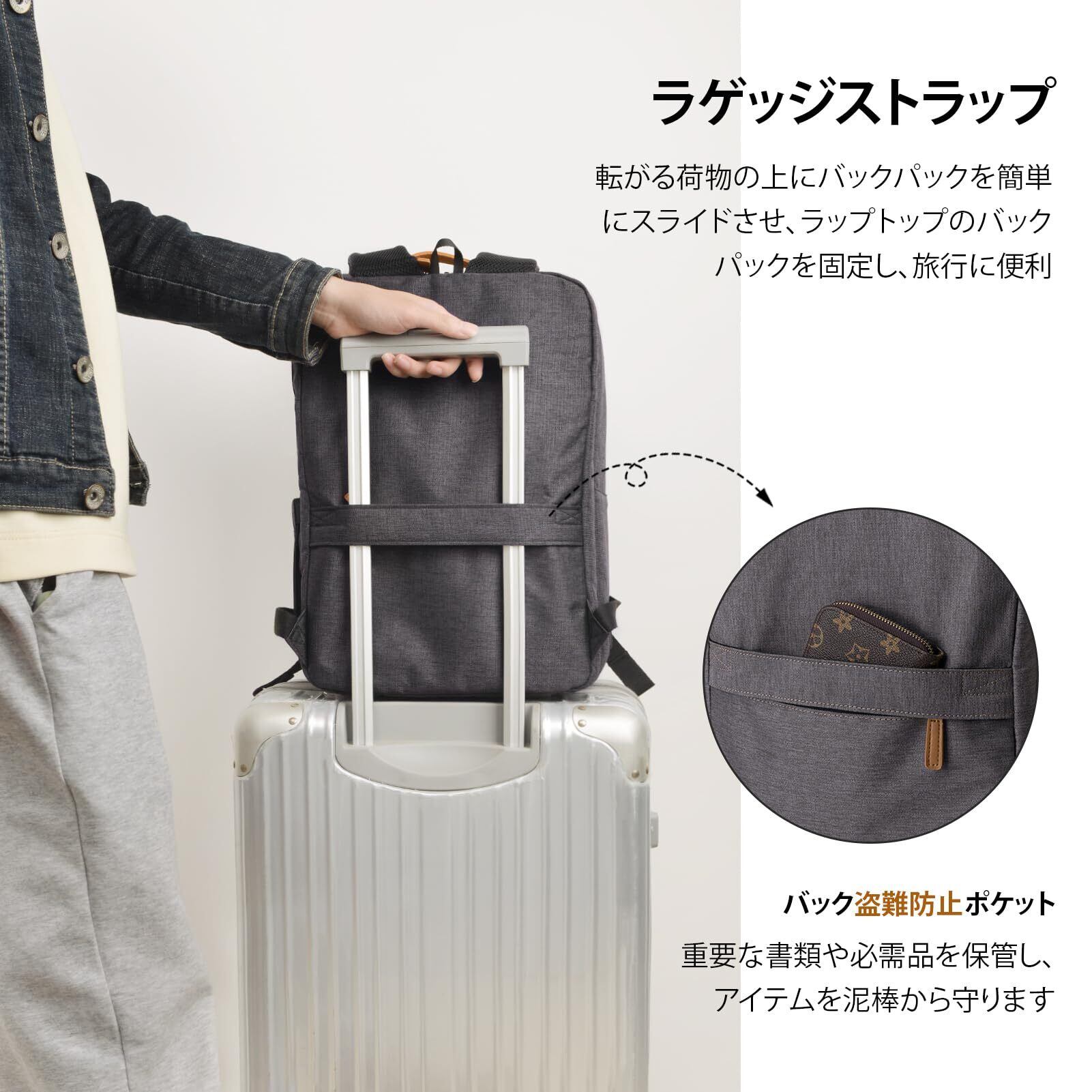 【外部USB充電ポート】ビジネスバッグ外側のUSB充電ポートと内側の充電ケーブルを備えて、歩いている時、携帯にすぐ充電できてとても便利です。背負ったままスマホを充電できます。強化されたパッド入りのケースはノートパソコン/iPadを傷しないように保護します。 貴重品は隠れたポケットに収納できて、盗まれることを避けます。
