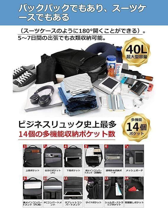 超大容量 ビジネス 旅行 リュック:外寸55x34x20cm(21.6x13.3x7.9インチ)で、機内に持ち込み可能です。15.6-17インチのラップトップのほかに、旅行の時も3~5日分の服も収納できます。