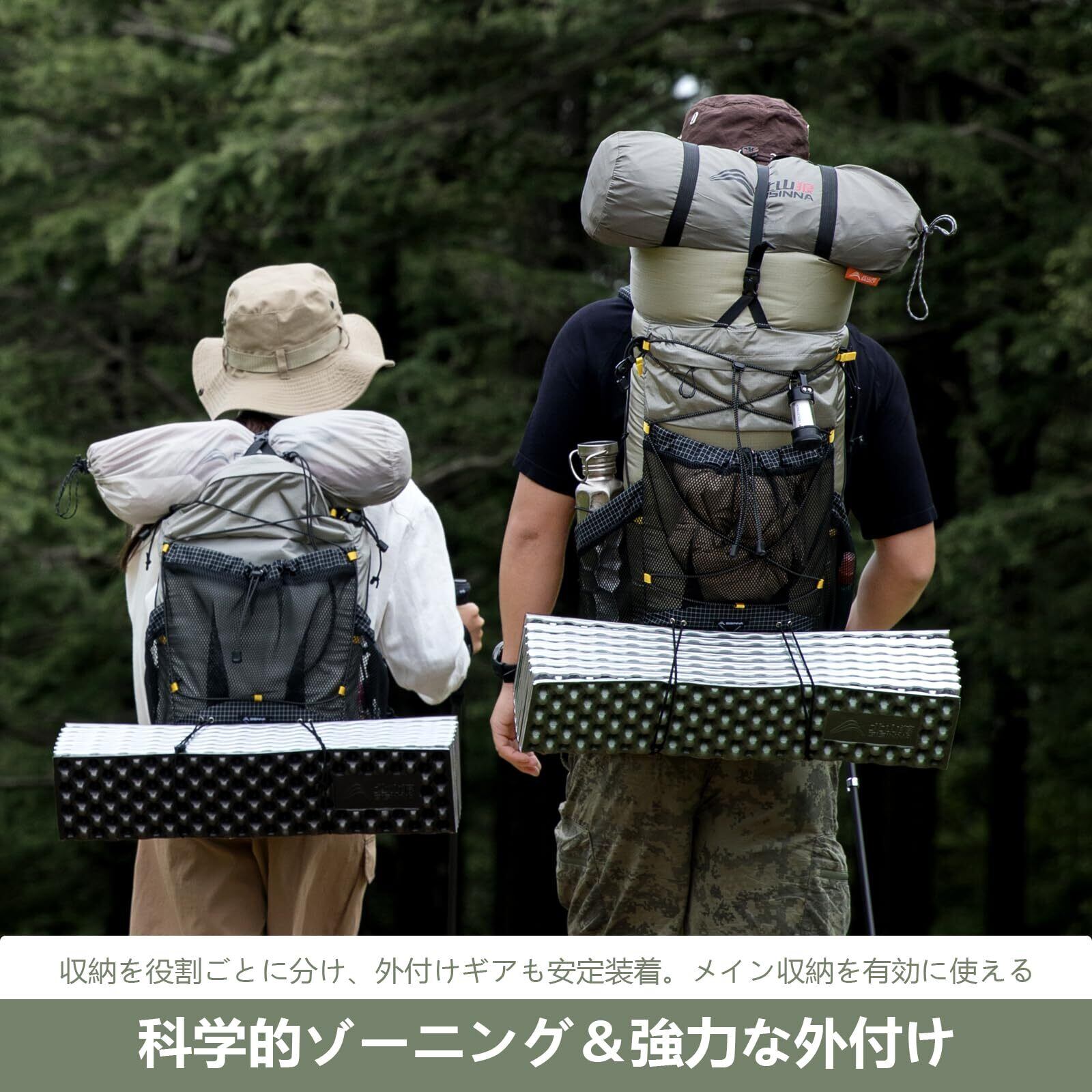 「この[BISINNA]バックパックは、35L(25L+10L)の大容量設計で、登山やハイキングに必要な装備をしっかり収納できます。必要なアイテムをすぐに持ち運べるため、自然を満喫するあなたにぴったりのパートナーです!」