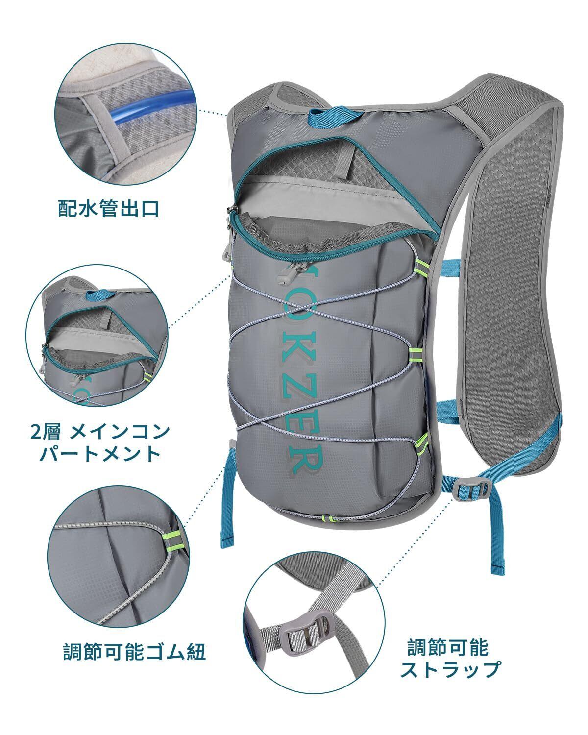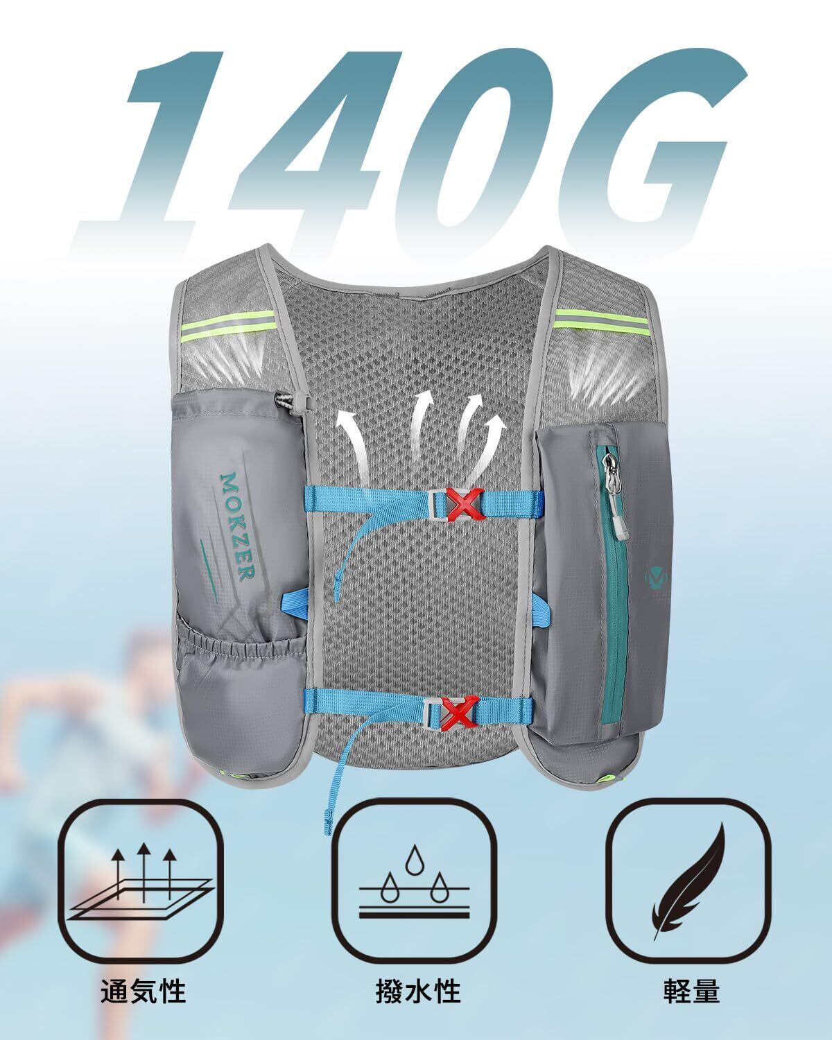 [mokzer]ランニングバッグ 140g超軽量 ランニングリュック トレイルラン マラソン ジョギング サイクリング 小さめ ハイドレーションバッグ 通気防水 自転車レース 光反射ストラップ付 豊かなポケット 男女/子供兼用