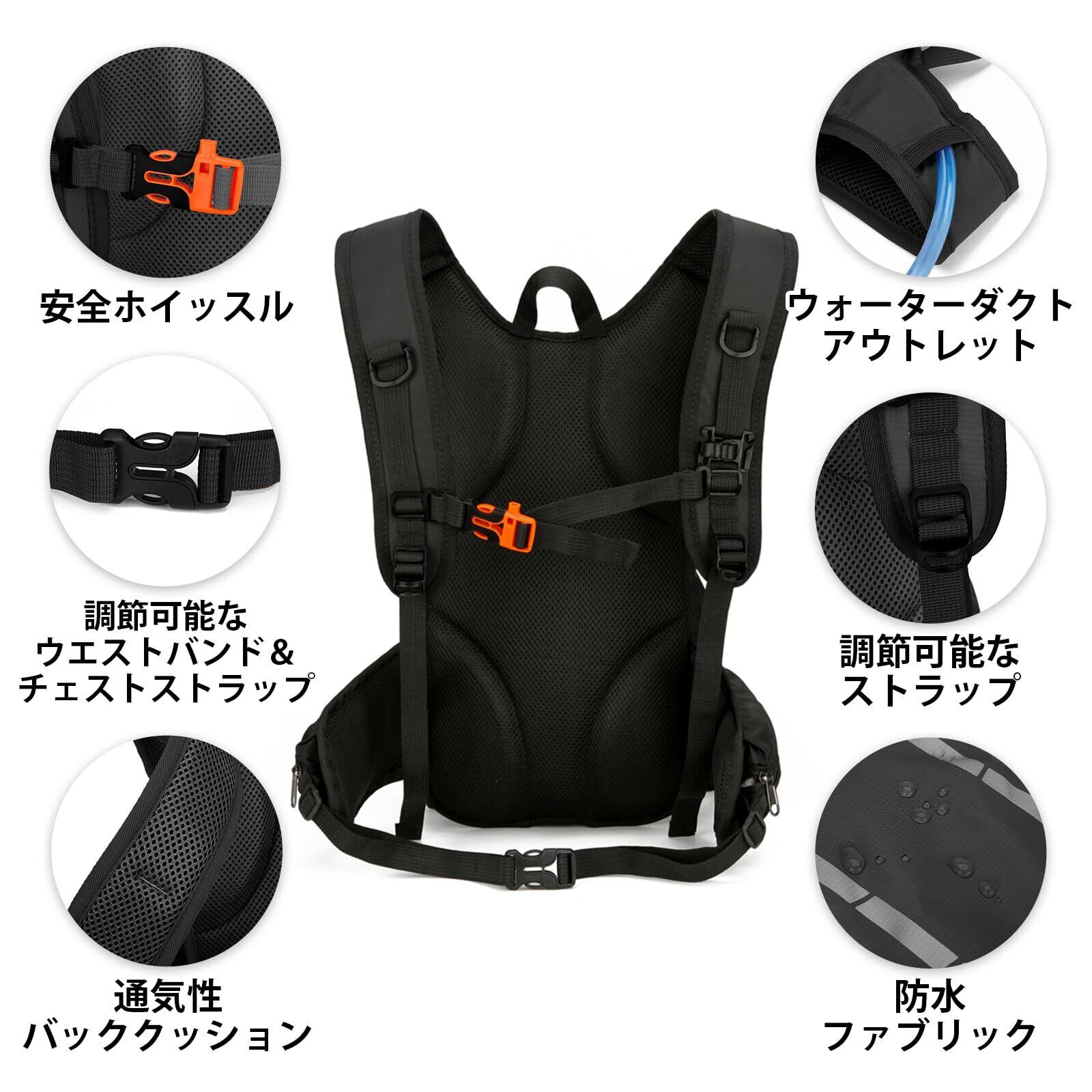 【ハイドレーションシステム】コンパートメントは水袋を保持することができ、防水素材は水漏れを恐れていない、内側のベルクロ固定、肩の注ぎ口は、いつでも水を補充するために、アウトドアスポーツに適した、すぐに水を飲むために手を解放することができます。