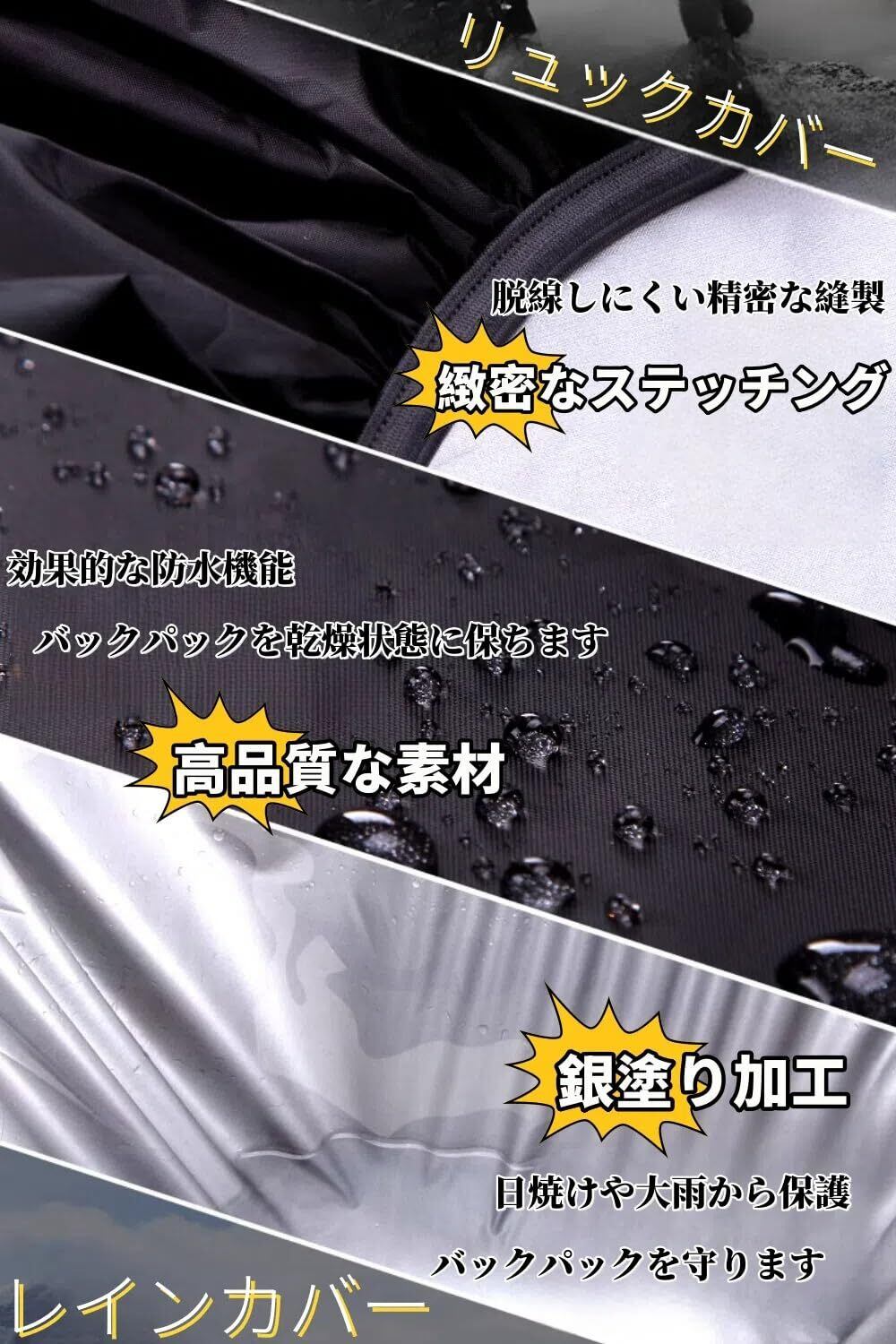 【機能性】このレインカバーは10〜35リットルのバックパックに対応しており、小型のトレッキングバッグやトラベルバッグ、日常使いのリュックなど、さまざまなタイプのバックパックにぴったりフィットします。あらゆる外出シーンでのニーズに対応できます。また、日常の電化製品の中に置くことができ、防塵としても使用できます。使用範囲が広いです