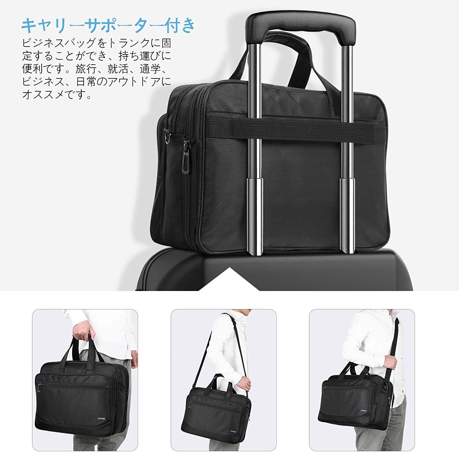 【改良&マチ拡張可能】:注意:旧バージョンでいただきましたお客様の声をすべて反映して大幅改良しました。(改良点:取っ手部分の素材、肩掛けベルトのフックの素材と縫製の改良、丈夫で耐久性もあります。)マチを約5cm拡張できるので、内容量も多く入れられます。ビジネスバッグ収納部は、A4/B4/B5サイズの書類やファイルがすっきりと収まるサイズ感。内装には大きめのベルクロポケットやクリアポケット、ペンホルダーなどの複数のポケットを備え、必要不可欠なビジネスツールを種別ごとに管理しやすいデザインとなっています。バッグ内ポケットは17インチまでの標準的なノートパソコンが収納可能なPCポケット。他のマグホックポケットにはスマートフォン、本、服、傘やサッと取り出したいパスケースなどを収納できます。