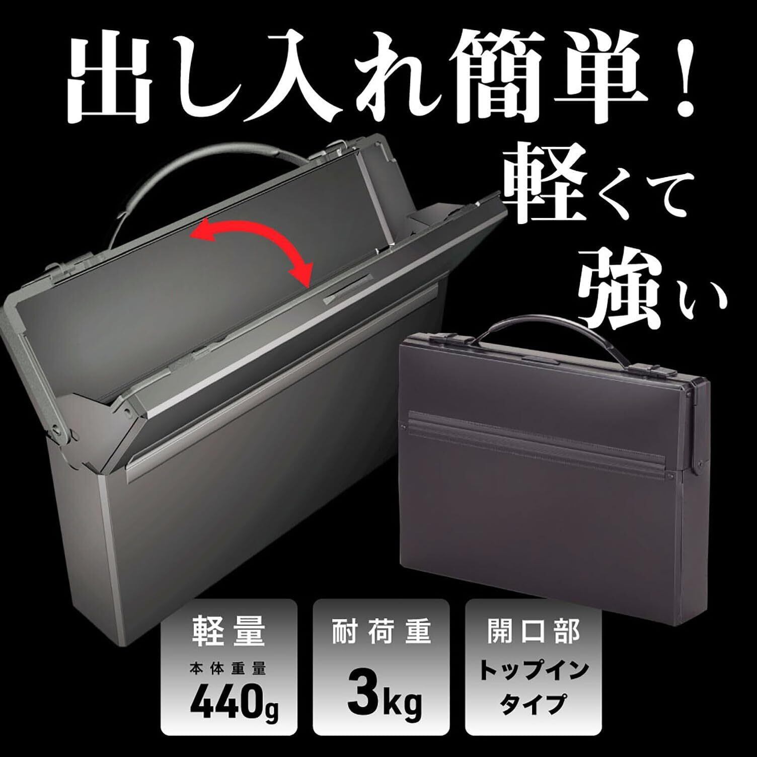●バッグの上部がワイドに開き、出し入れもスムーズ。新機構のダレスバッグ。●開口部が大きく左右に開くトップインタイプなので中の書類がひとめでわかり、書類の出し入れが素早く出来ます。●外側にスライドさせるだけのカンタン開閉で手間取りません。●A4サイズのファイルがラクラク入り、3kgまで収納可能。