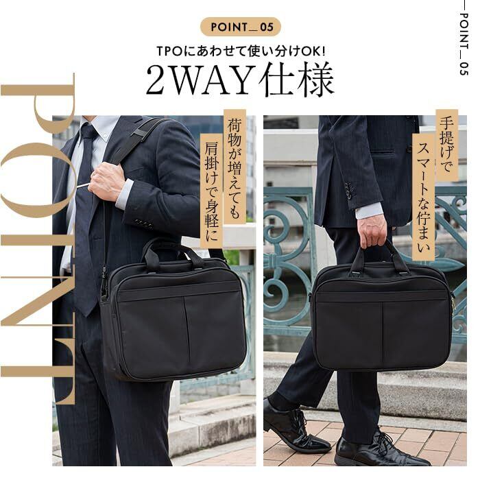 「この[ラッフィナート] ビジネスバッグは、通勤や出張にぴったりの軽量デザイン!日々の移動でも負担を感じさせない使いやすさが魅力です。ショルダーベルト付きだから、シーンに応じた持ち運びスタイルが実現します!」