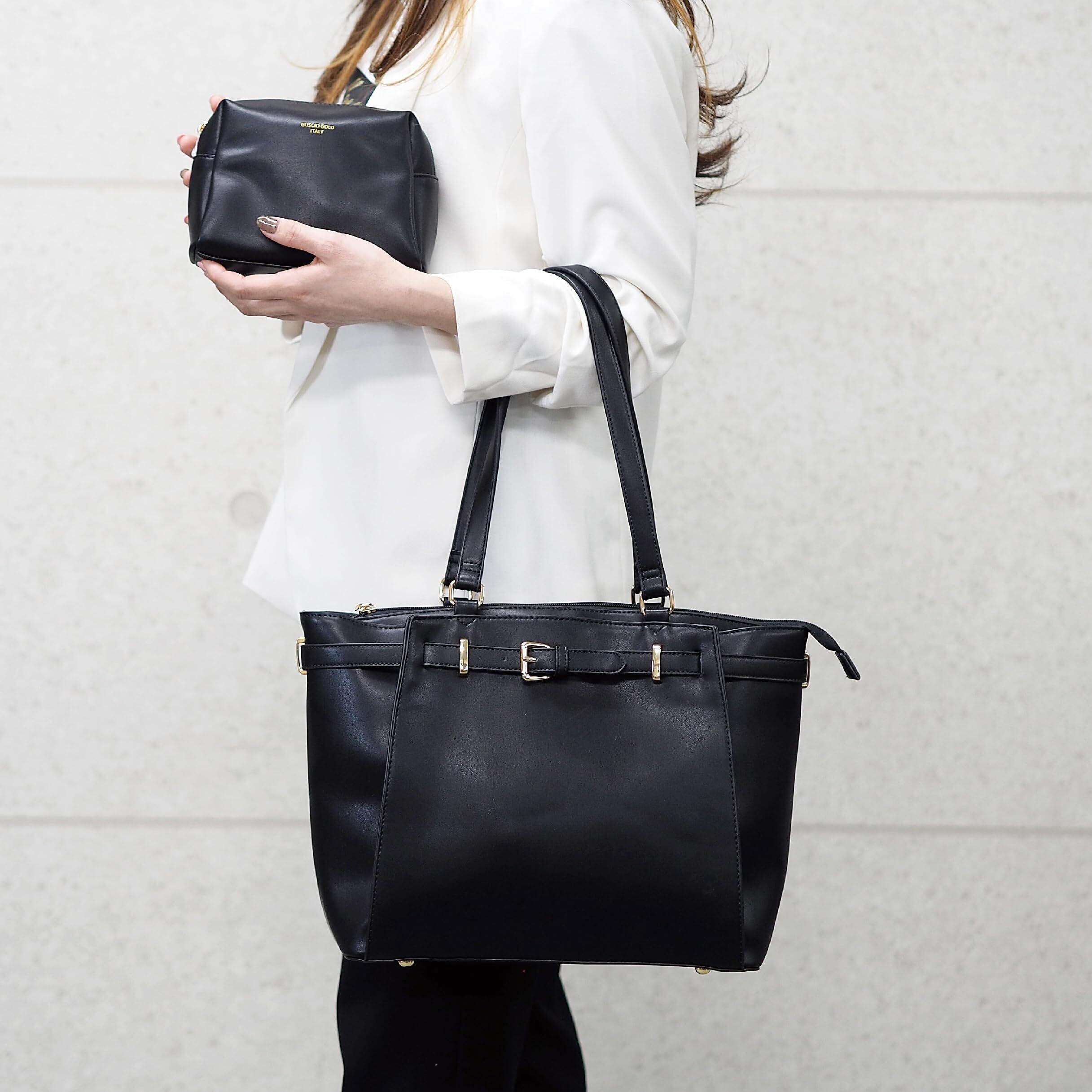 **\[グッシオ ゴールドラベル] ビジネス トートバッグ 通勤通学 2点セット - おしゃれなベルトデザインポーチ付き!/**
