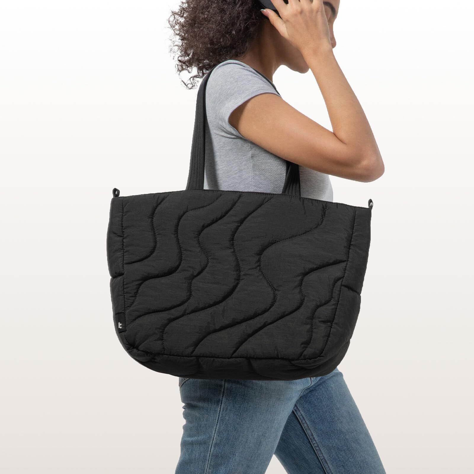 [tomtoc] ふわふわ トートバッグ レディース 軽量 ショルダーバッグ A4対応 柔らかい キルティング バッグ 肩掛け 撥水 ビジネスバッグ 就活バッグ レジャー 休日 通勤 通学 10/13.5L展開
