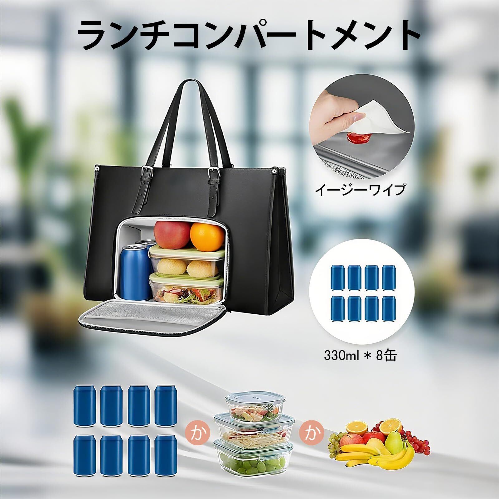[Dalona] ビジネスバッグ レディース 大容量 就活バッグ カバン お弁当が入る通勤バッグ リクルート トートバッグ 自立 仕事用バック 保冷 断熱ランチコンパートメント A4 15.6インチPC対応 多機能カバン