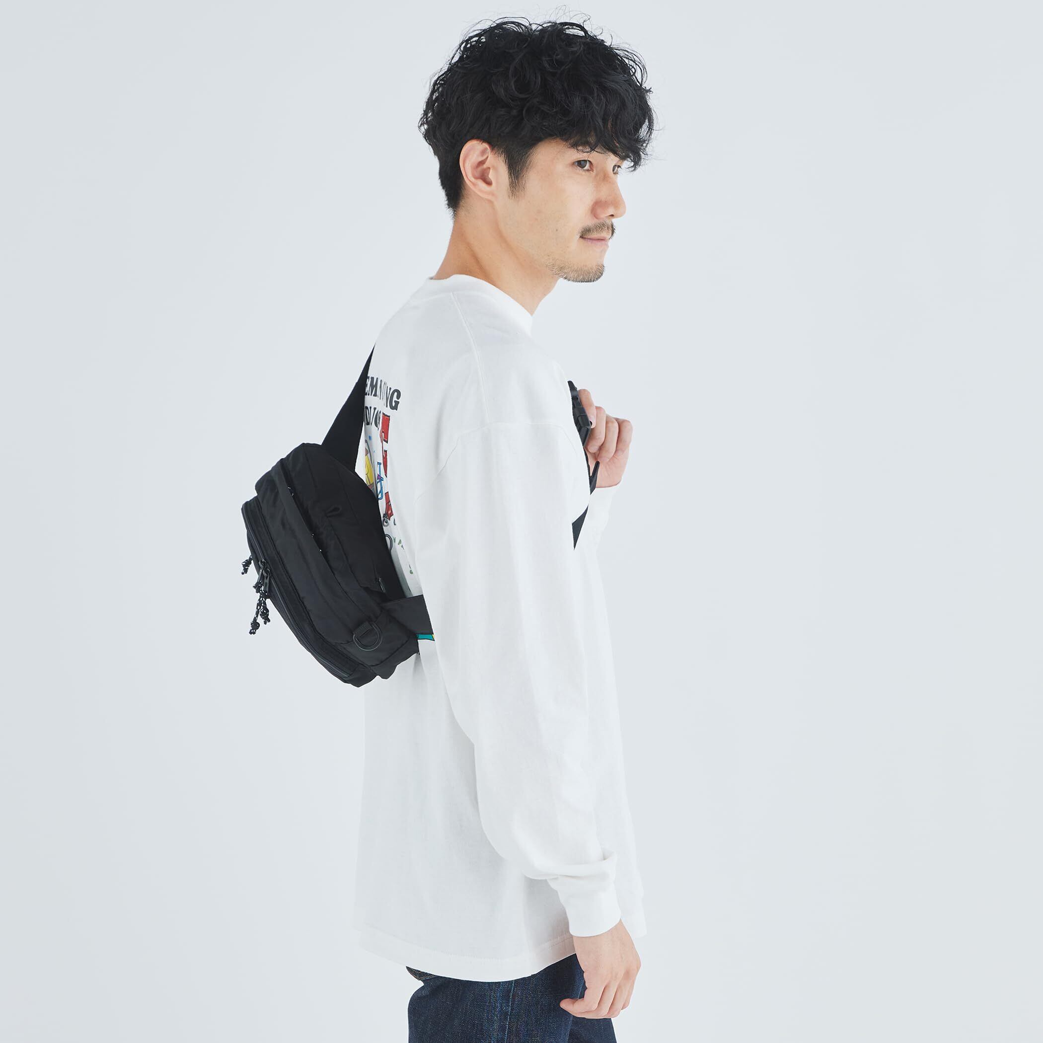 【着脱式のショルダーベルト】ポーチ・ウェストバッグとしての使用だけでなく、ショルダーベルトを取り付けることで斜めがけでの使用も可能です。