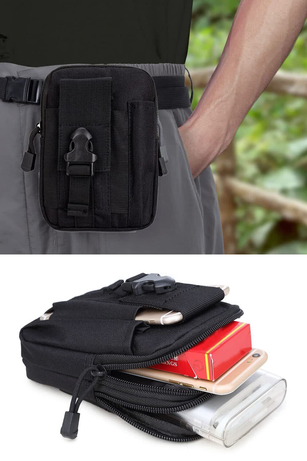 **\YFFSFDC 多機能ポーチ ベルトポーチ ウエストポーチ 小物入れ ウエストバッグ 携帯便利 大容量 登山 探検 キャンプ アウトドア用(ブラック) - 冒険のお供に最適なマルチポーチ!/**