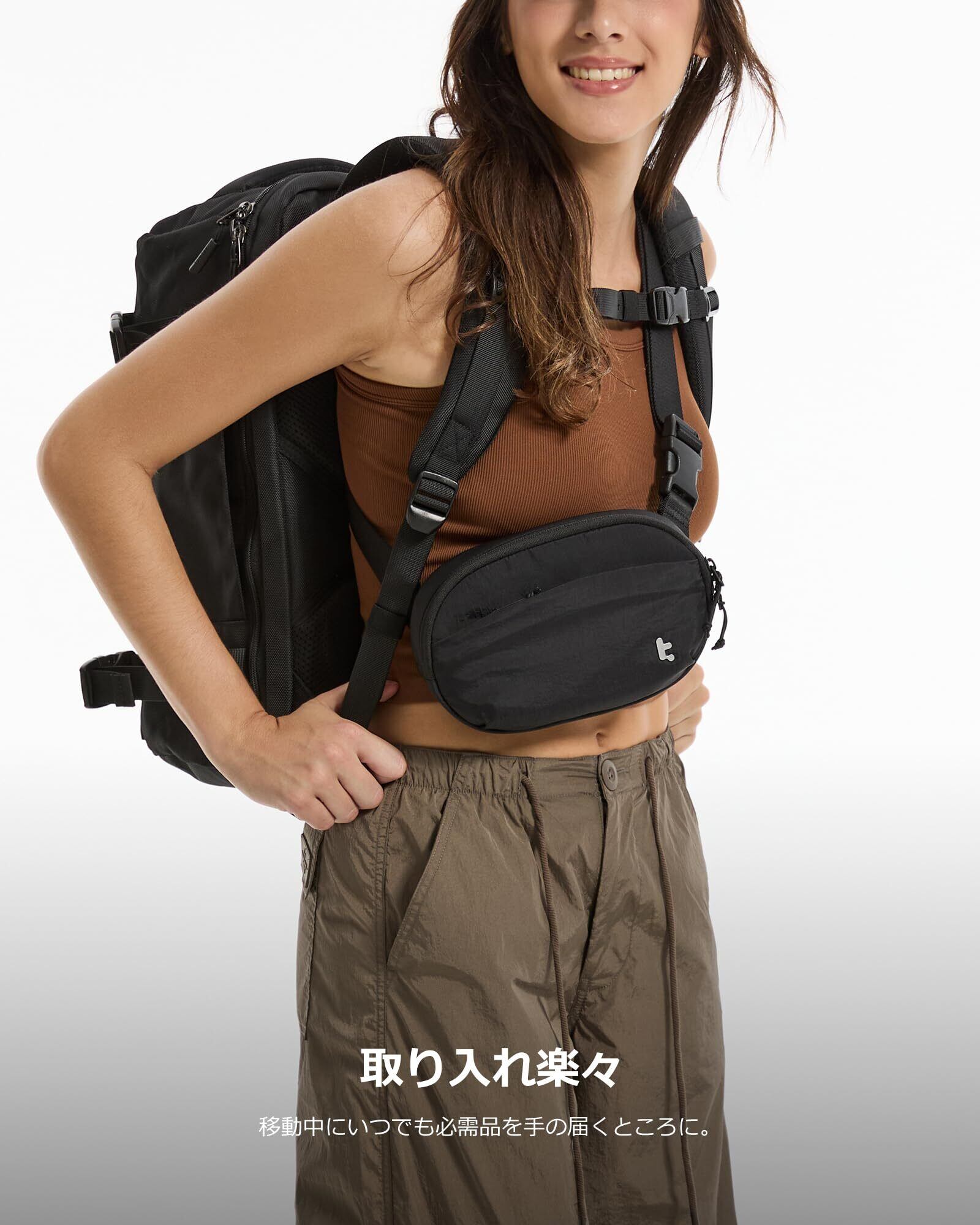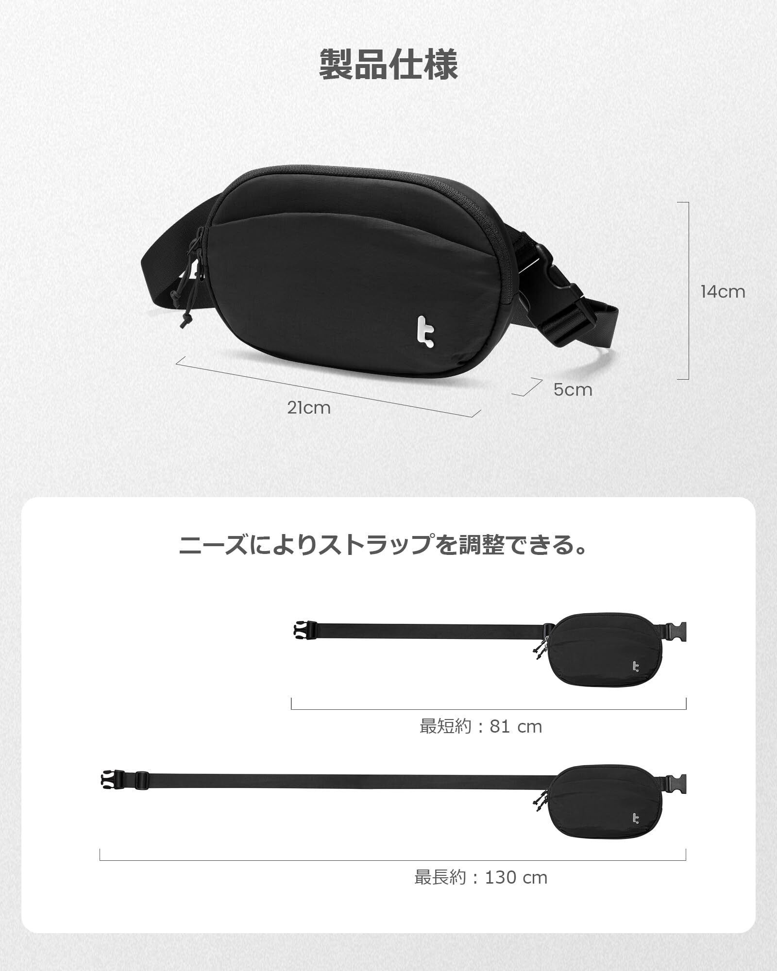 tomtoc ウエストポーチ ボディバッグ 軽量 小さめ ウエストバッグ レディース おしゃれ ミニバッグ クロスボディ ヒップバッグ 斜め掛け ファニーパック 仕事 アウトドア 自転車 散歩 旅行 お出掛け 1.5L ブラック