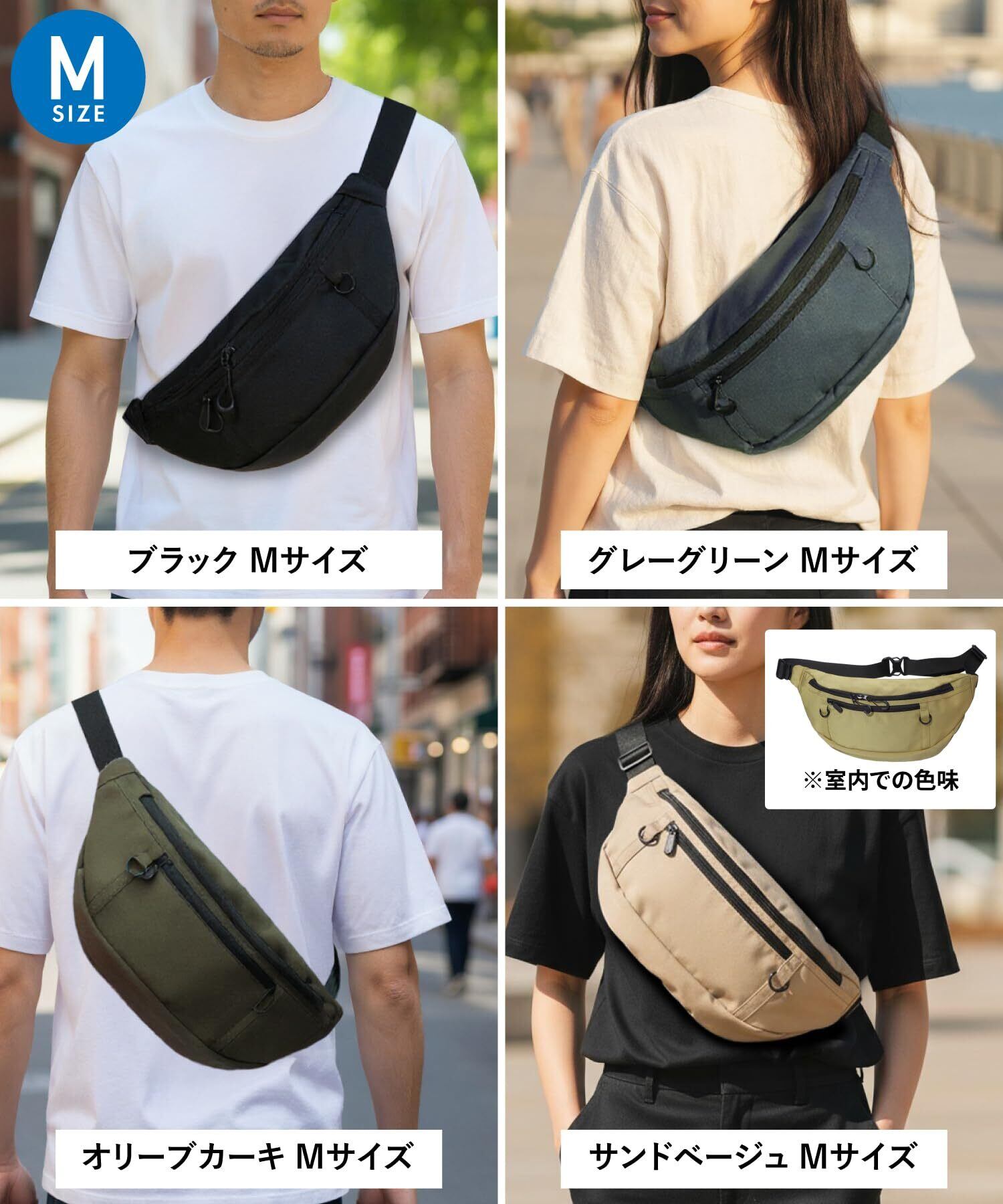 【スペック】Mサイズ:40cm×16cm×5cm、重量:約285g、Lサイズ: 42cm×20cm×7cm、重量:約315g、素材:ナイロン、Made in PRC、カラー展開:ブラック、サンドベージュ、グレーグリーン、オリーブカーキ) ※バッグ本体は防水仕様ではございません。