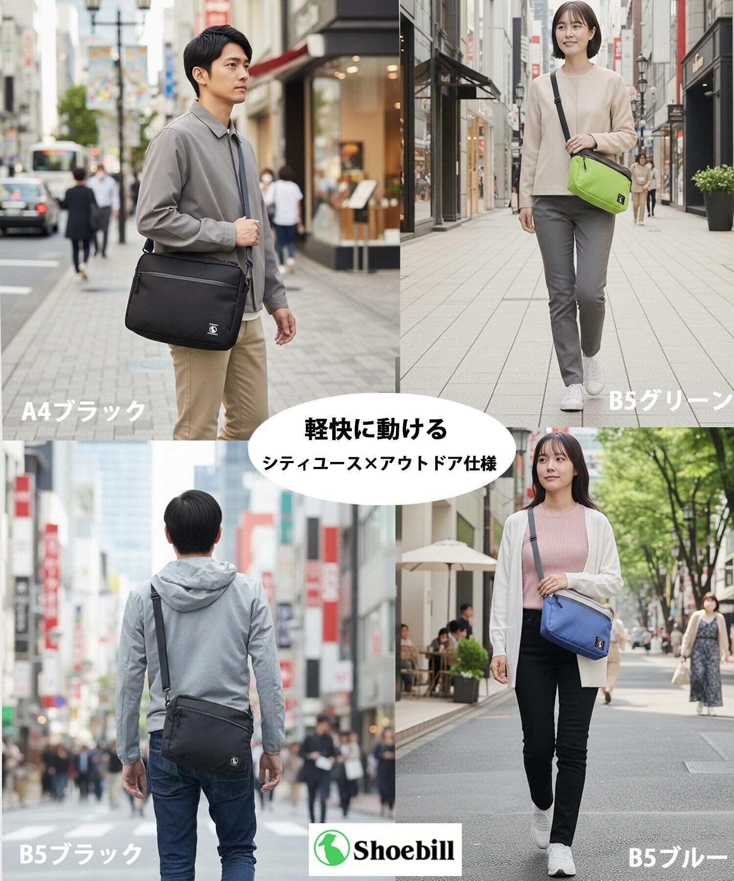 「Shoebillのサコッシュバッグは、A4やB5サイズのアイテムが収納可能で、登山や普段使いにも最適なデザインです。大きめのサイズながら軽量設計で、カジュアルからスポーツシーンまで幅広く活躍します!」