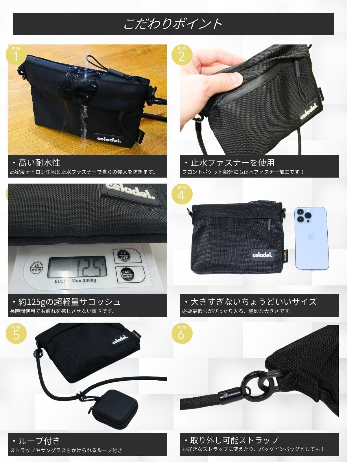 [celadel] サコッシュ ショルダーバッグ スマホポーチ メンズ 撥水 アウトドア 薄型 小さめ 軽量 ナイロン生地