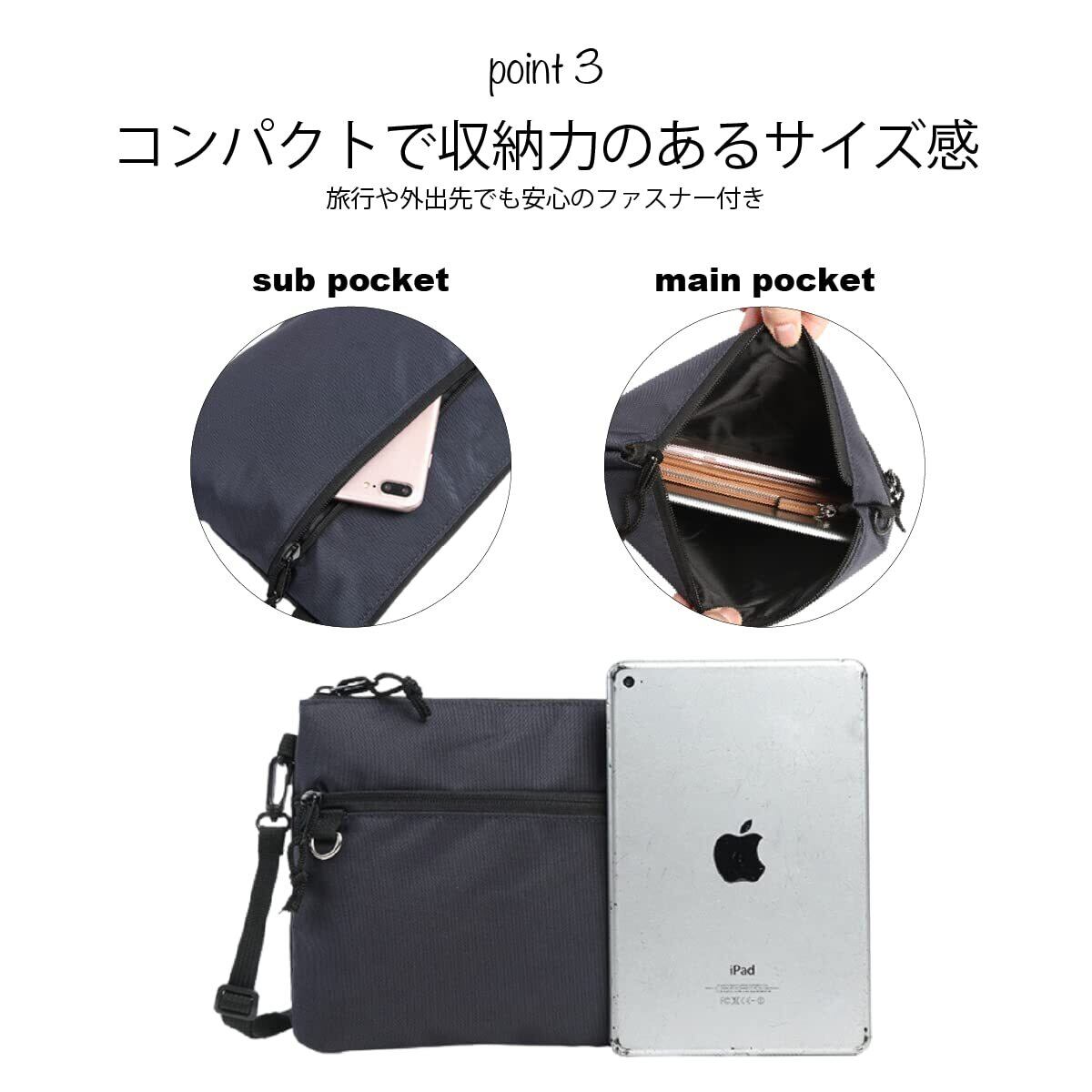 【軽量でコンパクト】 薄型のシンプルデザイン、必要な物をしっかり収納可能です。75gで超軽量。長時間使用でも肩こりや首の疲れを軽減。 【サッと出かけられるバッグ】「少ない荷物でちょっとそこまで」の場面で大活躍。必要な小物や貴重品を収納するのにちょうど良いサイズ感。スマホ、財布、モバイルバッテリー、鍵などがすっきり入る! 2つのポケットで用途別に小物を仕分けできます。 【シンプル&ベーシック】どんなシーンにも馴染むフォルムで、ちょっとそこまでのお出かけ、旅行やアウトドアなど様々な場所で活躍します。 【2way仕様】ベルトを外せばバッグインバッグに。旅先でのサブバッグとしても。男女問わずお使いいただける、普段使いにも作業用にも大活躍!! 【サイズ】 縦:約19cm 横:約27cm マチ:約1cm ベルト調整可能サイズ:約65cm~約120cm