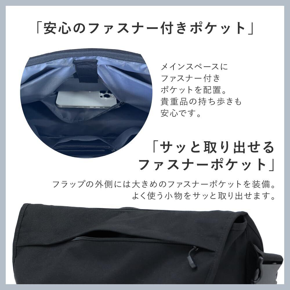 【即アクセス×大容量】LASIEMからメッセンジャーバッグが新登場! ・シークレットファスナー ・ノートPCも入る ・大容量 ・軽量 ・ユニセックス ・高耐久撥水ナイロン 【フタを上げずに、即アクセス。】ワンアクションで荷物に手が届く。リュックにはないメッセンジャーバッグならではの利便性を追求。 【秘密のファスナーで、メイン直結】フラップを持ち上げずにメインスペースへアクセスできるシークレットファスナーを搭載。また、両開きファスナーで左右どちらからでも簡単に開閉可能。