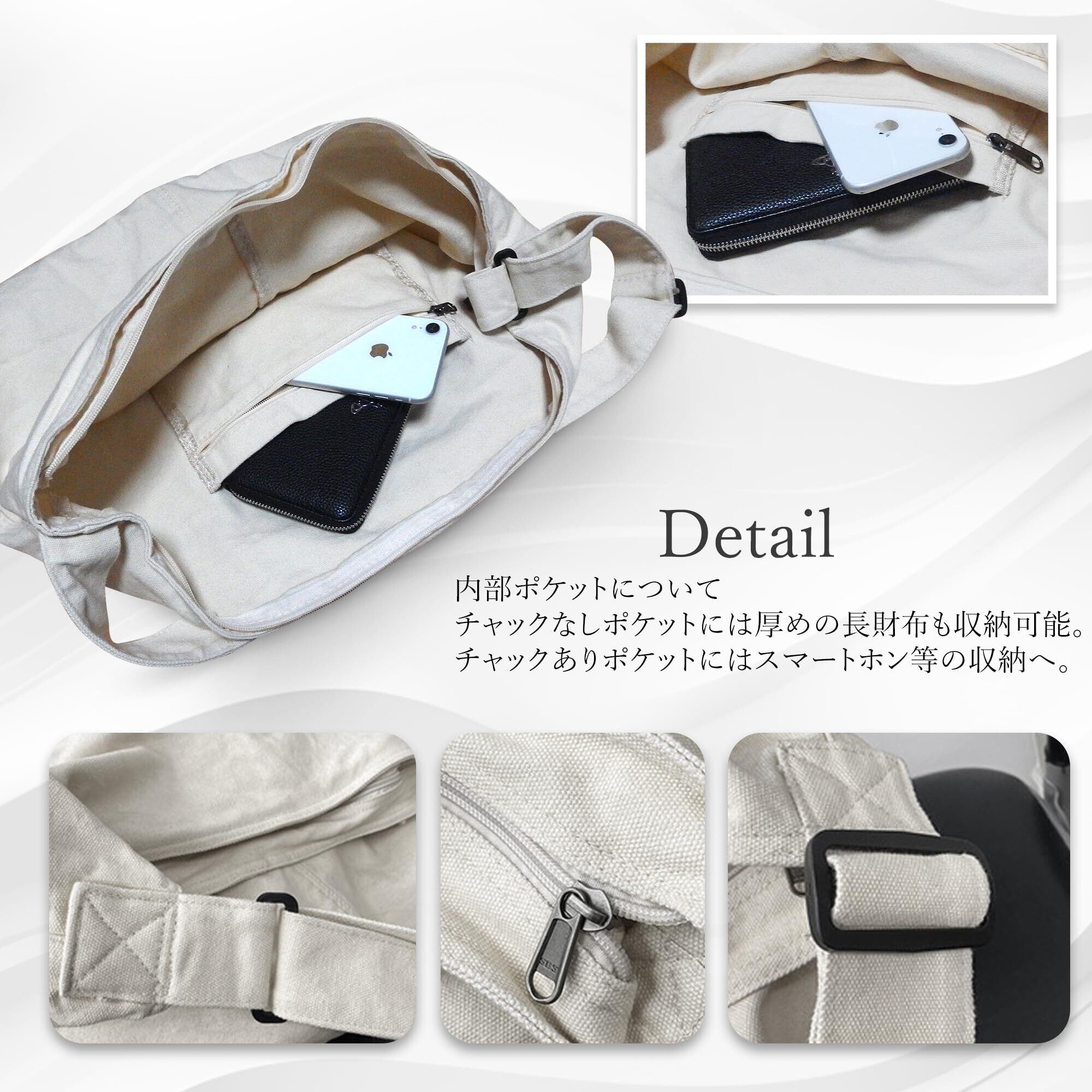 いつでも人気の鞄キャンバスバッグ、ストラップの調節も可能。 内面のポケットが少ないですが、ポーチなどで仕分けをすると整理整頓がしやすくなります。