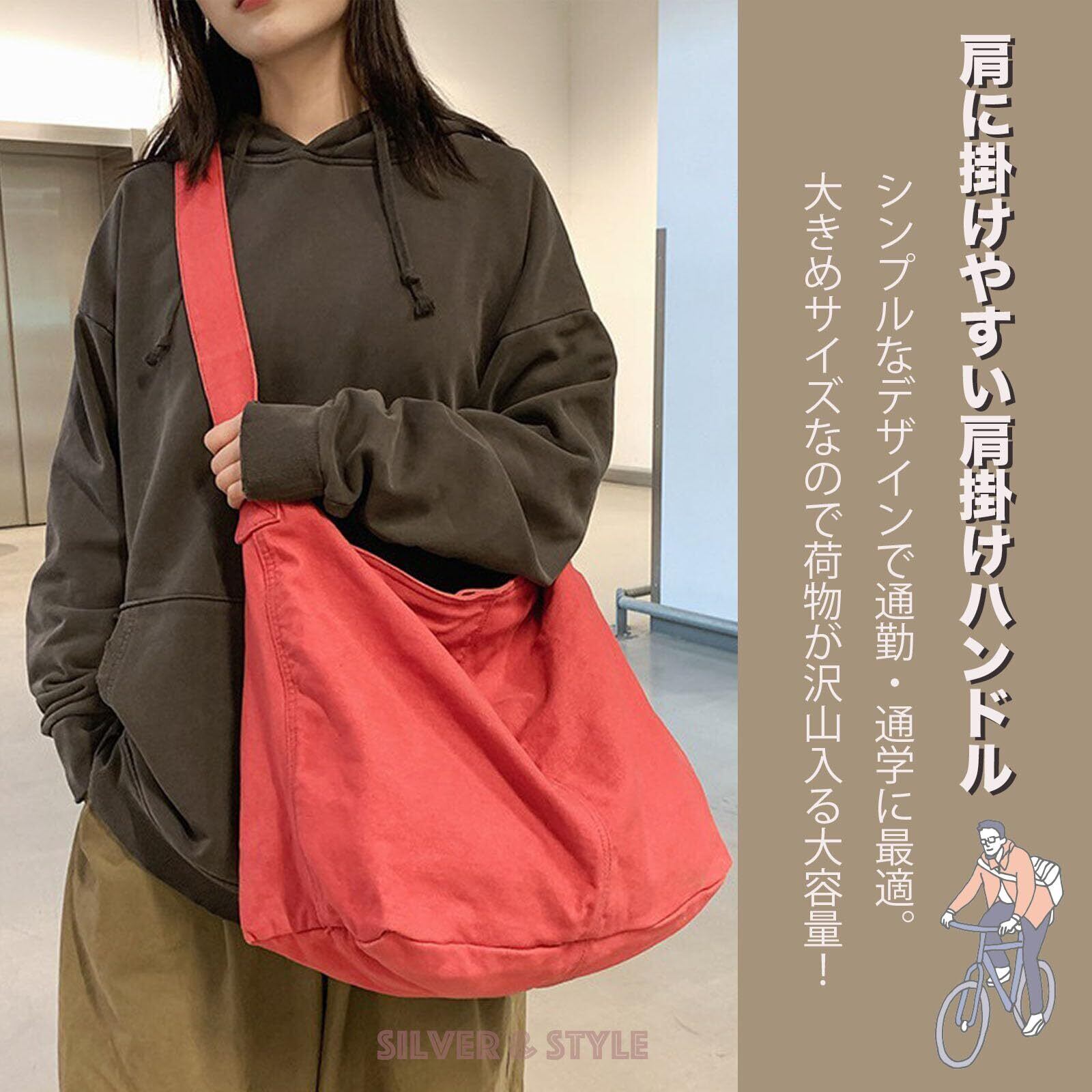 [Silver & Style] メッセンジャーバッグ キャンバス 軽量 大容量 無地 大きめ 帆布 斜めがけ ショルダー バッグ