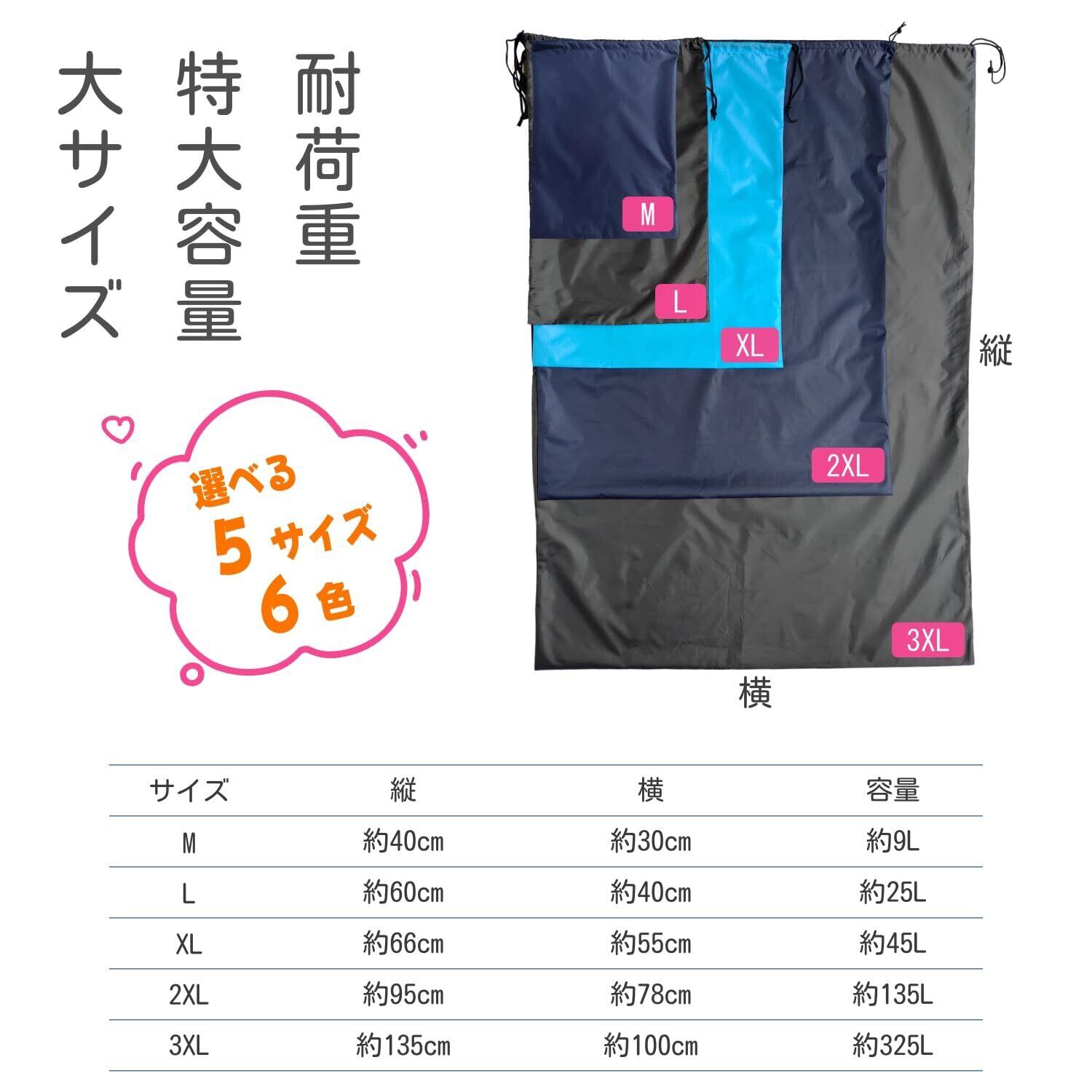 **\巾着袋 大きな 特大サイズ ナイロン 防水 無地 - 大容量で幅広い用途に対応!/**