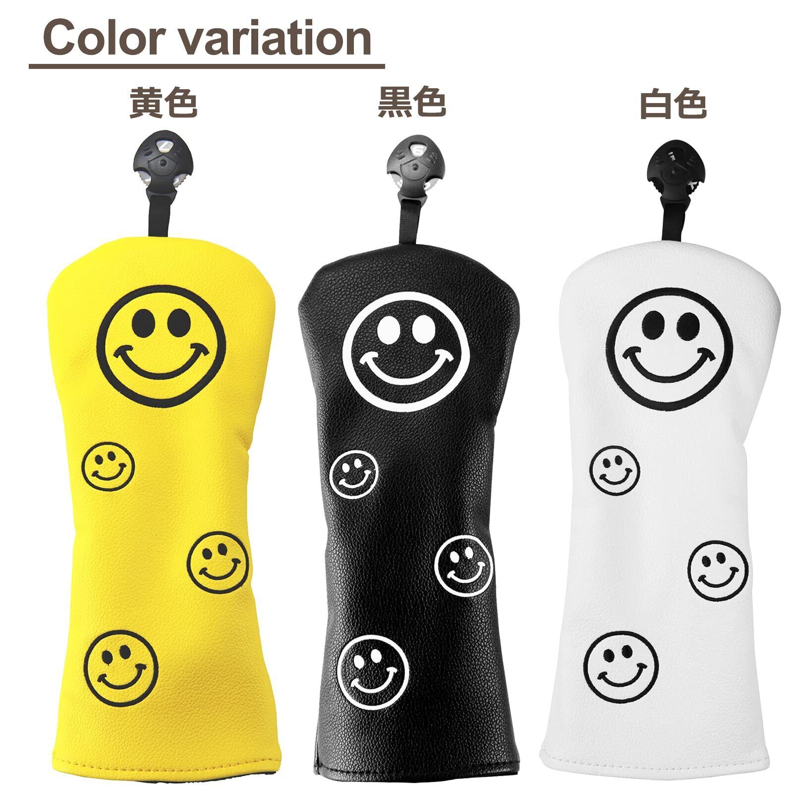 ゴルフ ヘッドカバー ドライバー440cc 460cc用カバー ウッド用カバー ユーティリティ UT用カバー 防水仕様 スマイル
