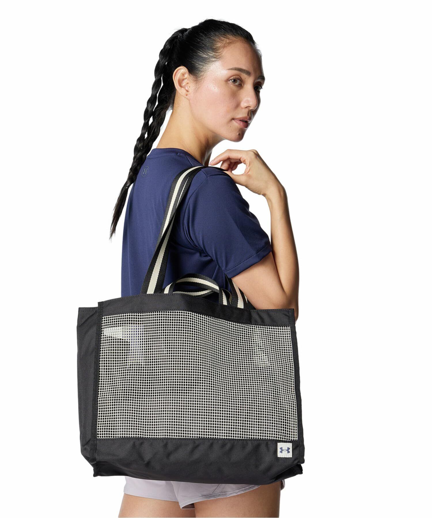 「このアンダーアーマーのUA Sportstyle Mesh Tote Bagは、スポーツジムやビーチ、旅行など、どんなシーンにもぴったりなトートバッグです。おしゃれなメッシュデザインが特徴で、実用性とスタイリッシュさを兼ね備えています!」