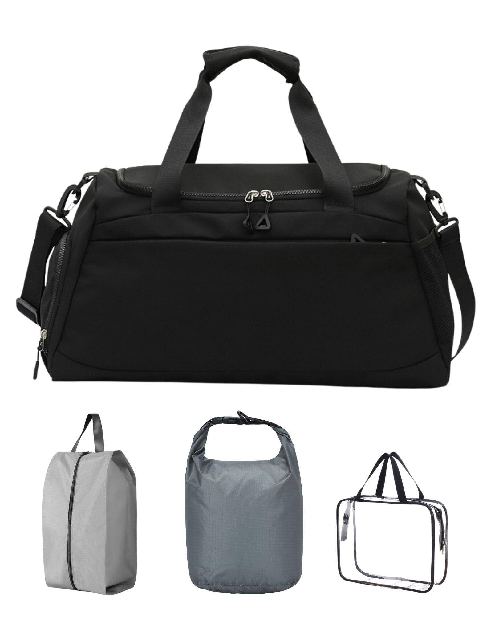 **\[ジム ボストンバッグ メンズ サブバッグ3点セット付き] 防臭防汚 シューズ収納ポケット付き ダッフルバッグ トレーニング フィットネス スポーツ ランニング ゴルフ テニス バドミントン 卓球 旅行 出張【ブラック】 - 機能性とデザインを両立させたスタイリッシュバッグ!/**