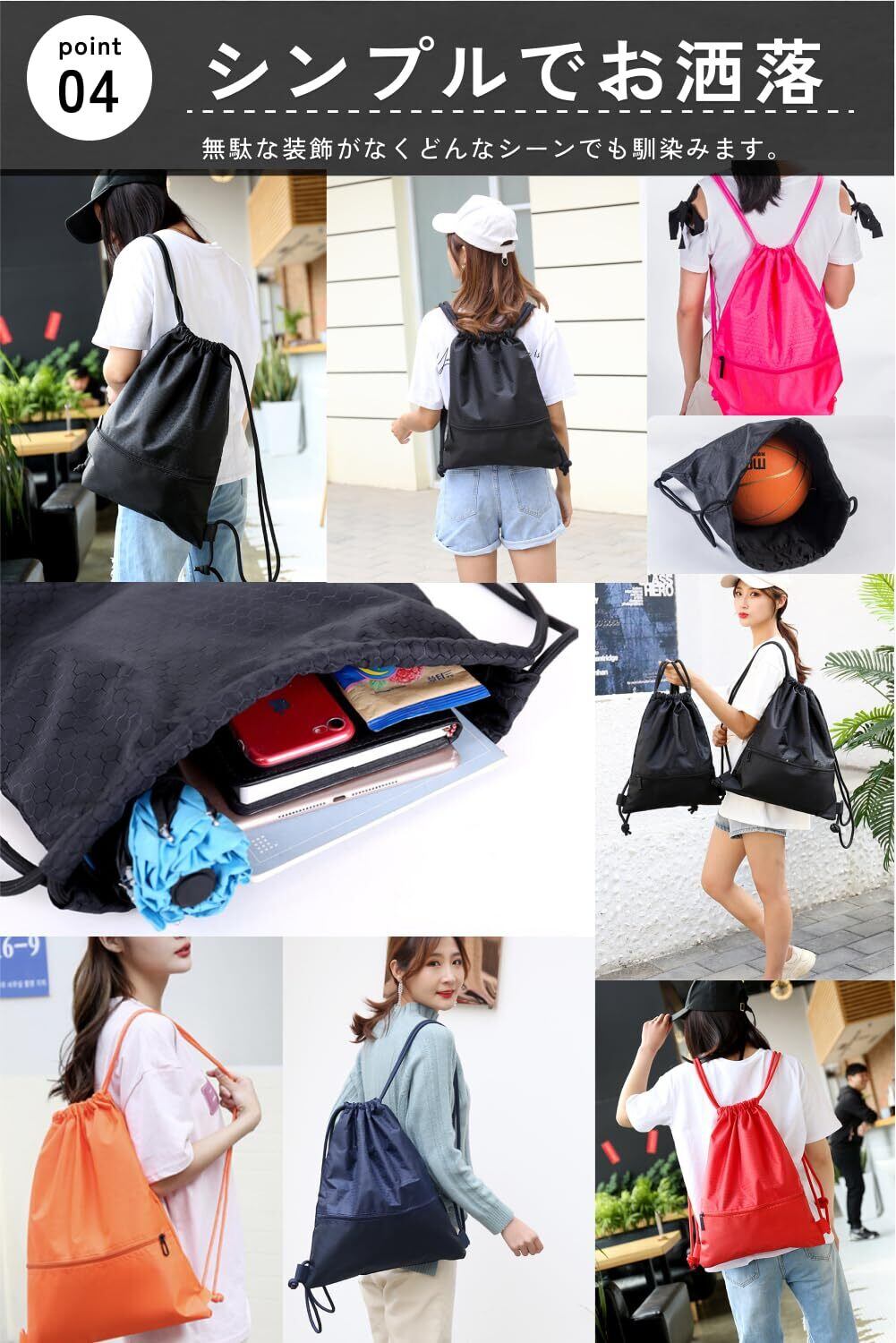 「日本メーカーのナップサック」は、フィットネスや水泳、アウトドアに最適な多機能デザインです。軽量で持ち運びが楽な春夏にぴったりのスタイリッシュなアイテムです。
