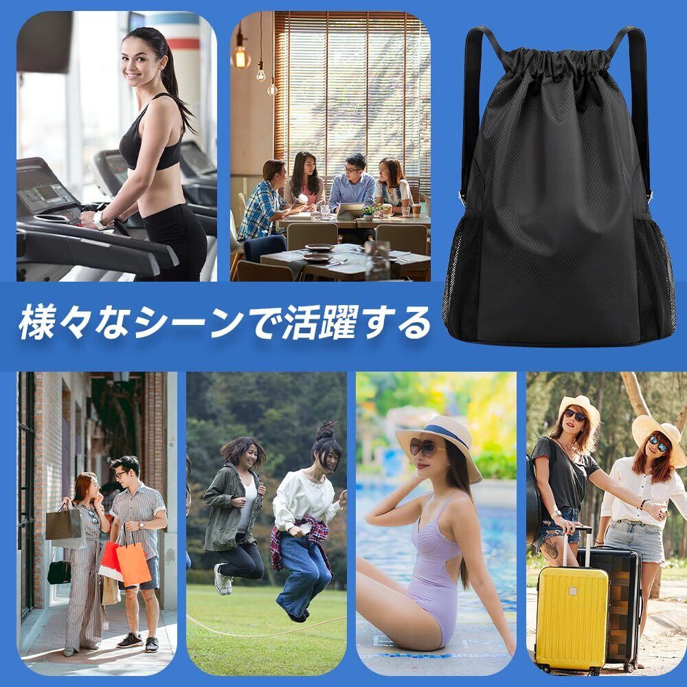 ナップサック ジムサック リュックサック プールバッグ 大容量 防水 撥水 軽量 乾湿分離 巾着袋 シューズ収納 折り畳み 多機能 スポーツバッグ ジム 水泳 運動 部活 旅行 アウトドア