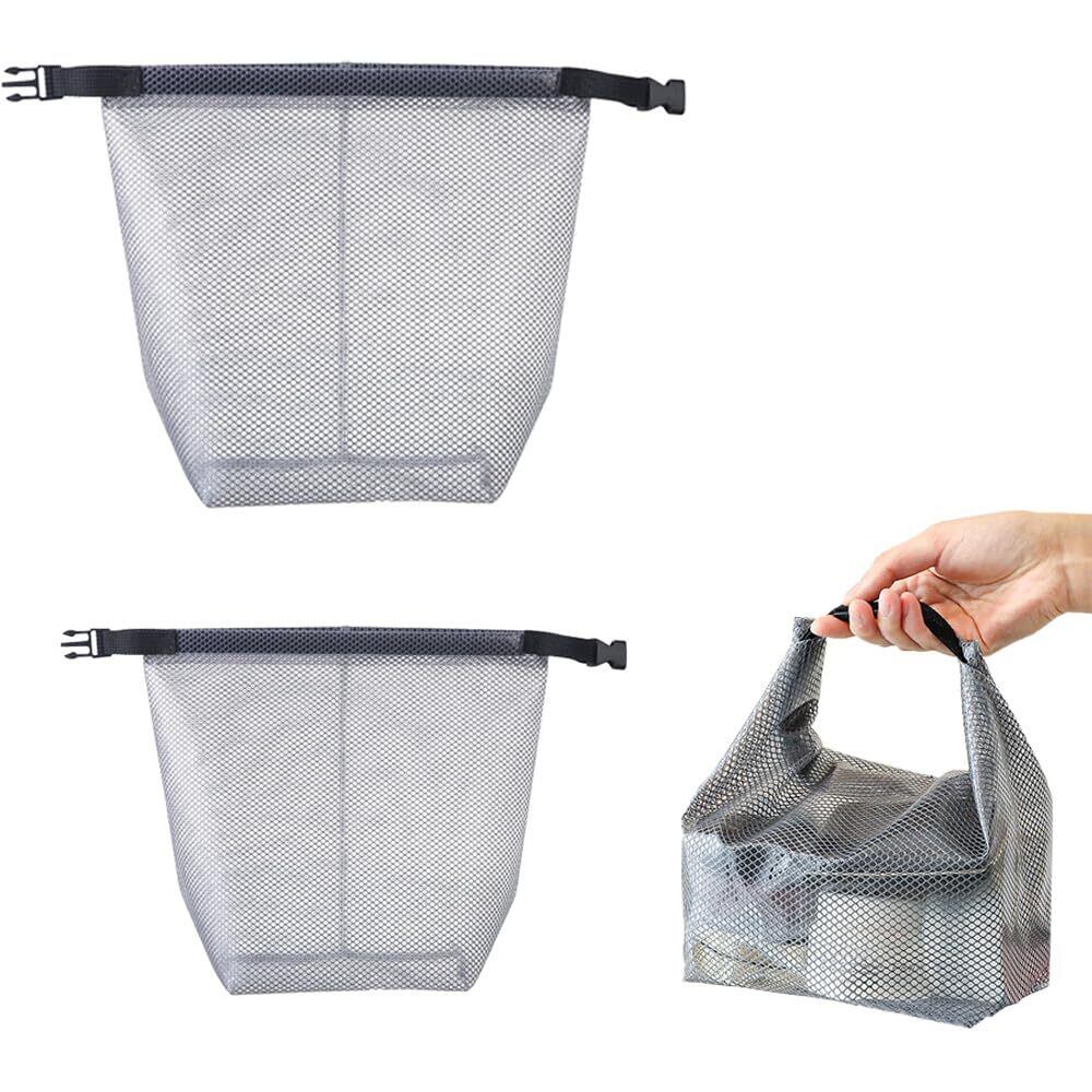 プールバッグ スパバッグ 大人用 防水 メッシュ 温泉 サウナ ビーチ お風呂 銭湯 大容量 2個セット(大1個+小1個) 灰色 折り畳み 携帯便利