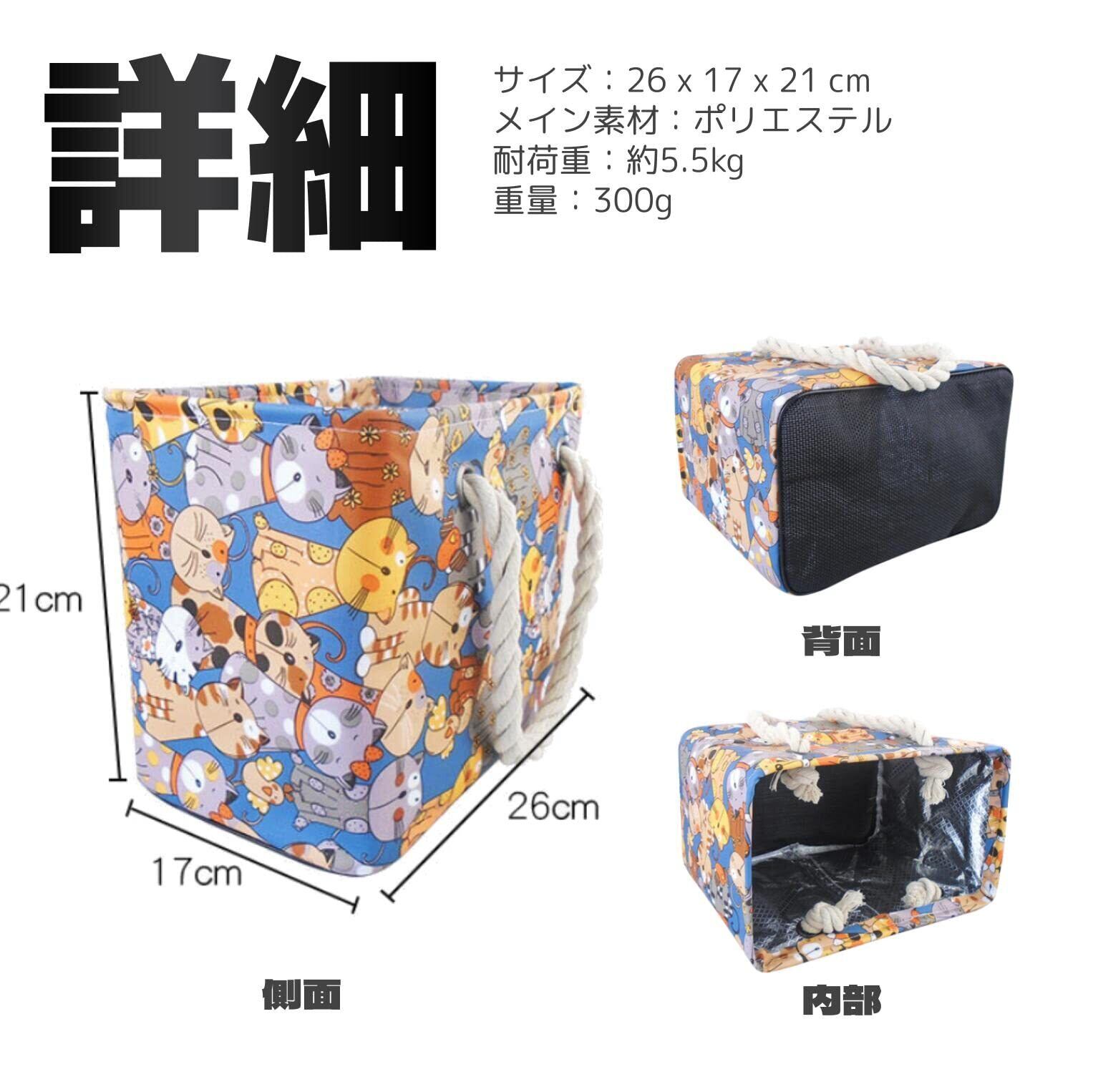 【詳細】サイズ:26 x 17 x 21 cm メイン素材:ポリエステル 耐荷重:約5.5kg 重量:300g