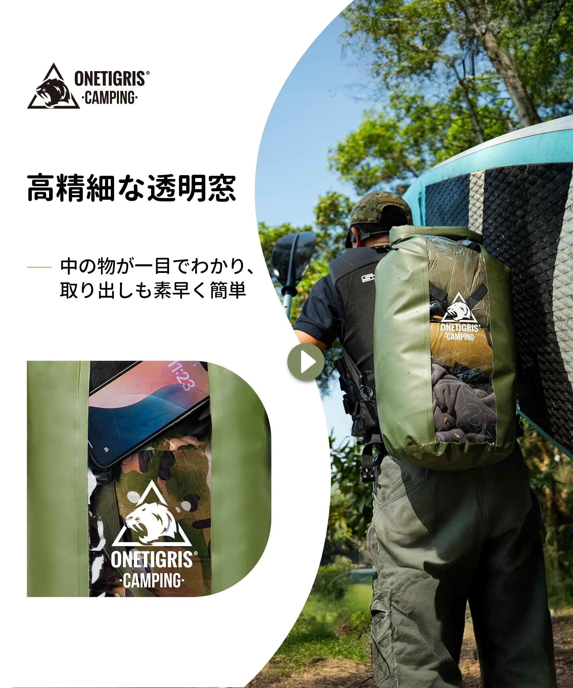 「[ONETIGRIS] ドライバッグ」は、アウトドアや水辺のアクティビティに最適な防水バッグです!キャンプ、カヤック、パドルボードなど、さまざまなシーンで安心して使用でき、大切な荷物をしっかりと保護します。このバッグがあれば、急な雨や水しぶきから中身を守ることができます!