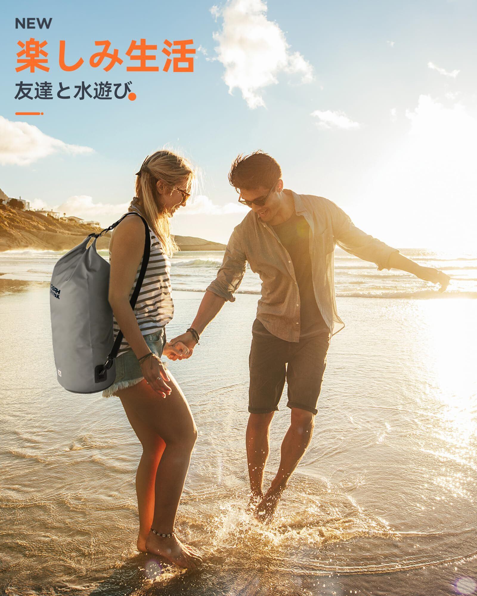 【3サイズ&使用シーン】:お客様のニーズに応じて異なる容量を選択できます。(5L、10L、20L)釣り、海水浴、海遊び、バイク旅行、登山、キャンプ、サーフィン、カヤック、ボート、温泉、ラフティング、水泳、スノーボードなど、さまざまなアウトストア活動に適用します。(ダイビングなどの長時間の潜水活動には使用できません)