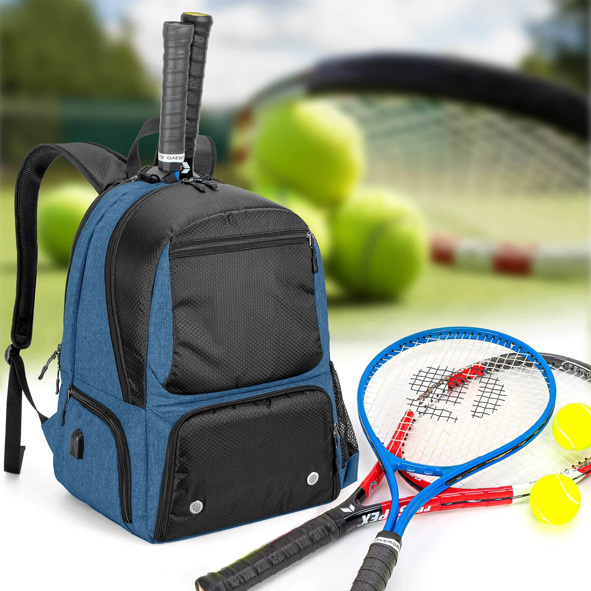 優れたデザイン:テニスバックパックにはパッド入りのラケットコンパートメントがあり、最大2つのラケットを収納できます。ダブル滑り止めジッパーと上部の調整可能なクイックリリースバックルがラケットを所定の位置に保ちます。