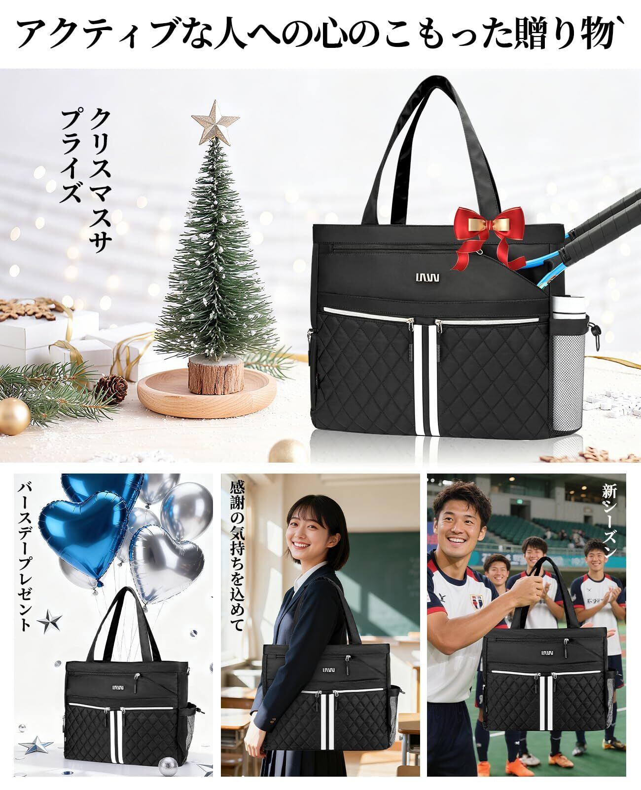 テニス トートバッグ(シューズ収納付き) - 大型キルティング ピックルボールバッグ(ラケット4本収納可能)防水&軽量 ジムバッグ(男女兼用)