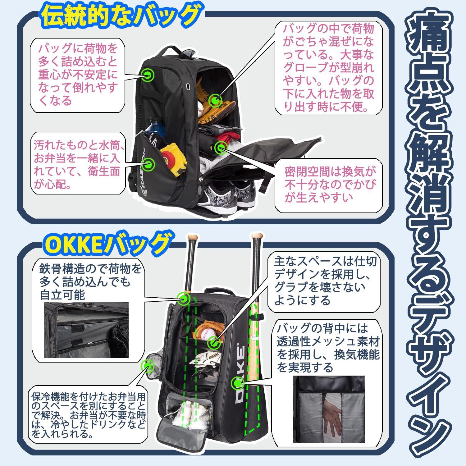 ●野球バッグはボール、グラブ、ヘルメット、バッティンググローブ、スパイクとキャップなどの物を別々に収納出来る。少年 にも 大人 にも適している