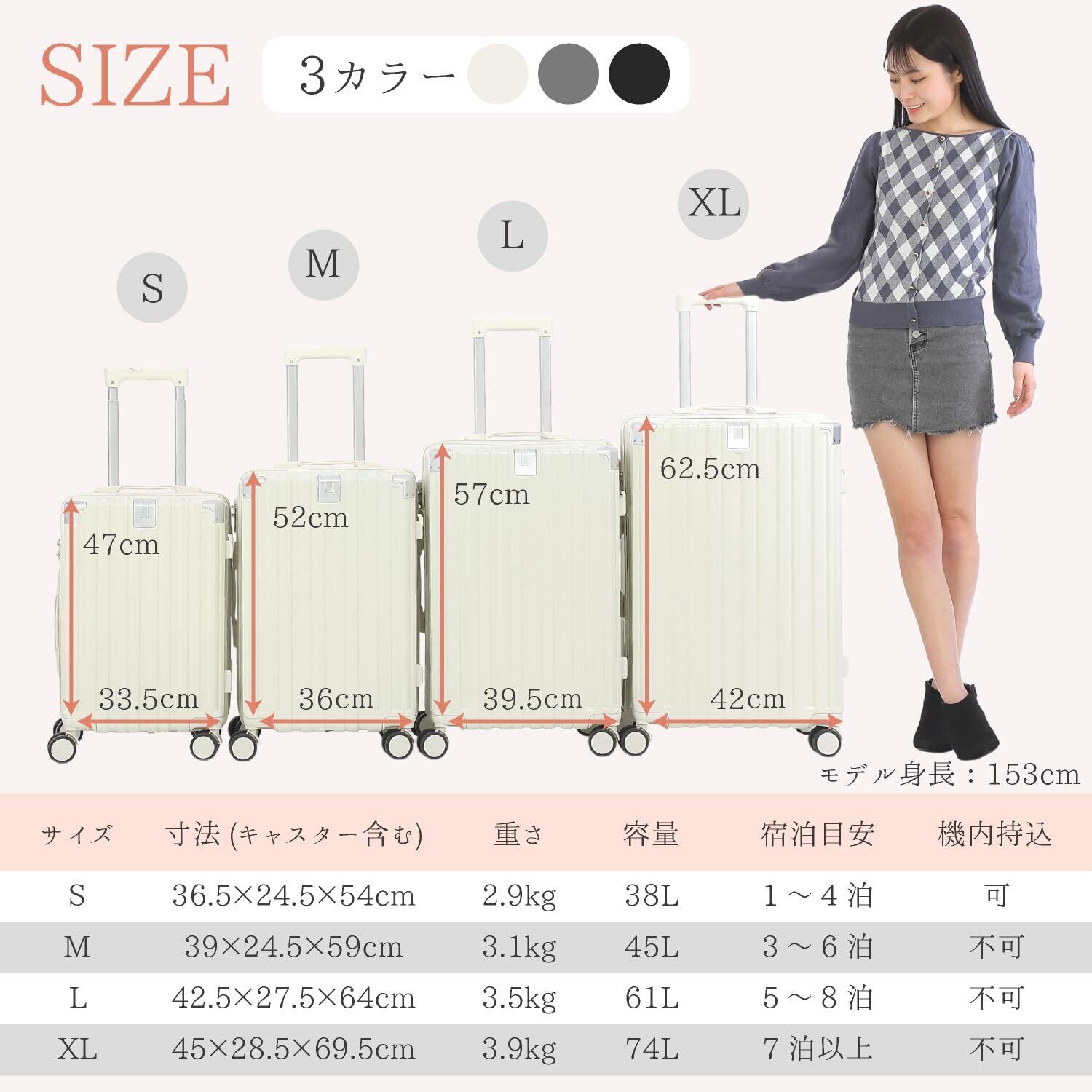 「[JOYME] スーツケース」は、旅行を快適にするための多機能キャリーケースです!機内持込み対応で、1~4泊の旅行にぴったりのSサイズ。ミルクホワイトの優しい色合いが、どんなシーンにもマッチします。