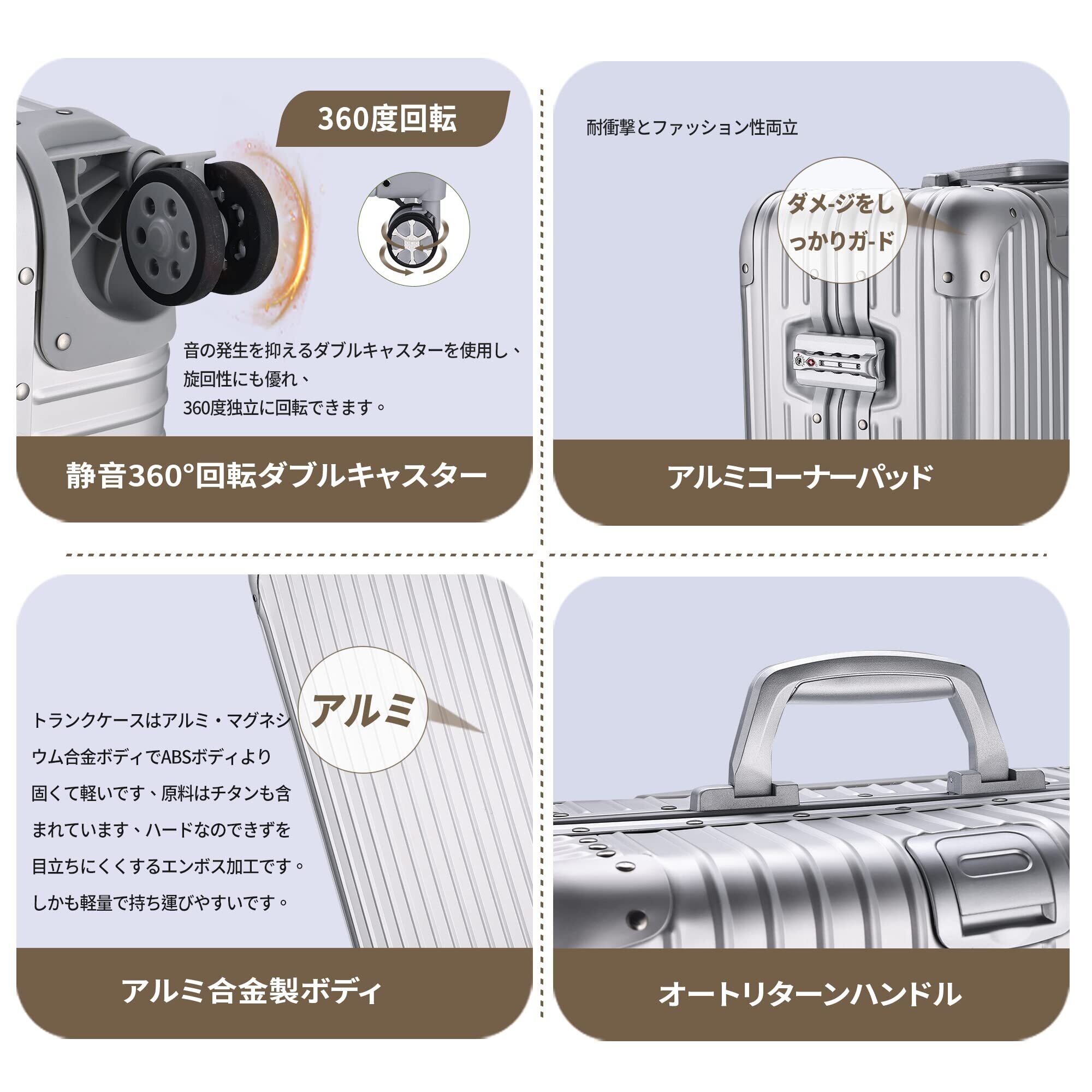 [Yuweijie] スーツケース キャリーケース オールアルミ合金ボディキャリーバッグ 機内持ち込み 耐衝撃 大型 軽量 ダブル仕切り板 静音ダブルキャスター TSAロック搭載 旅行 出張 Mサイズ, 4泊、5泊、6泊, 60L