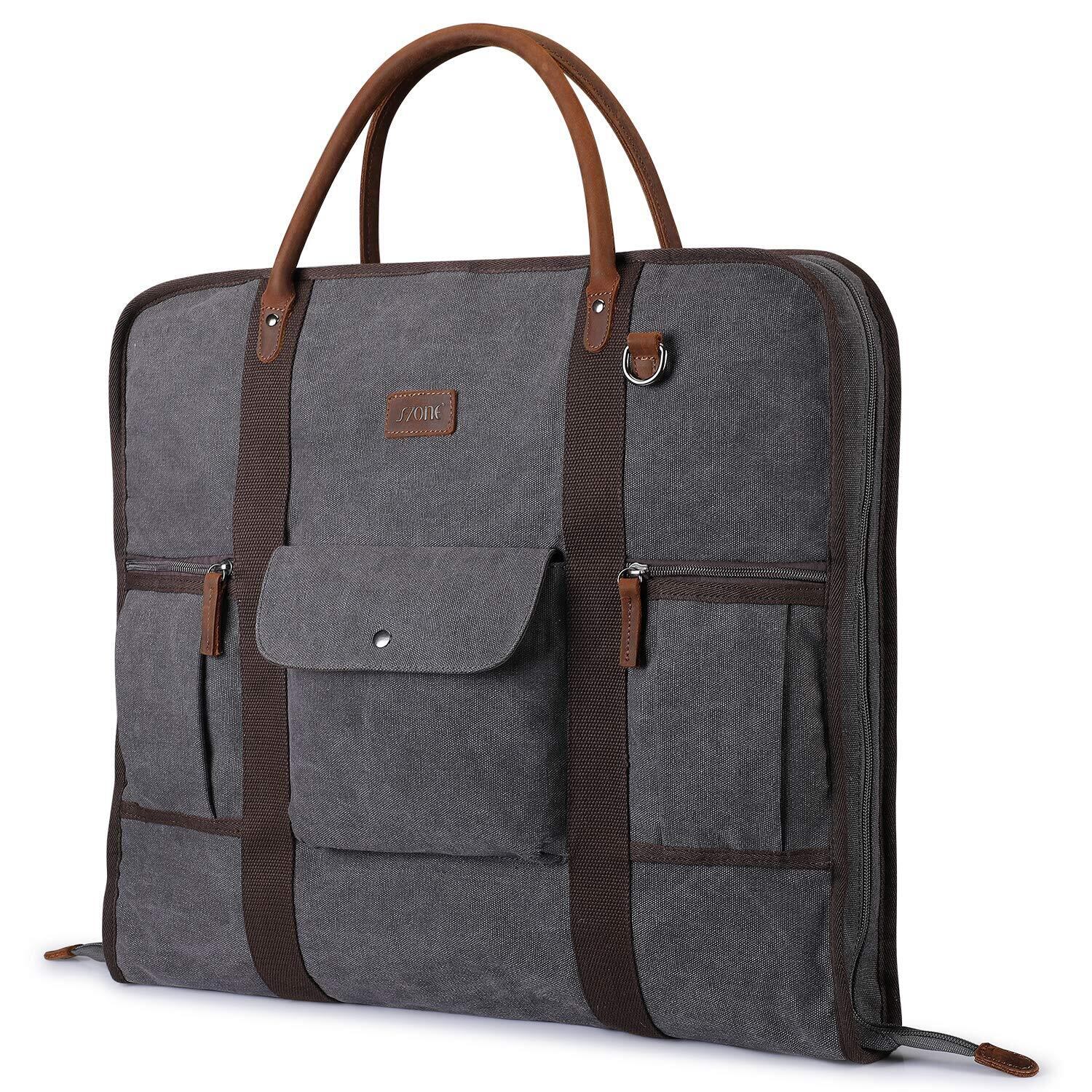 S-ZONE キャリーオン ガーメントバッグ ビジネス旅行用 キャンバスレザー メンズ スーツカバー