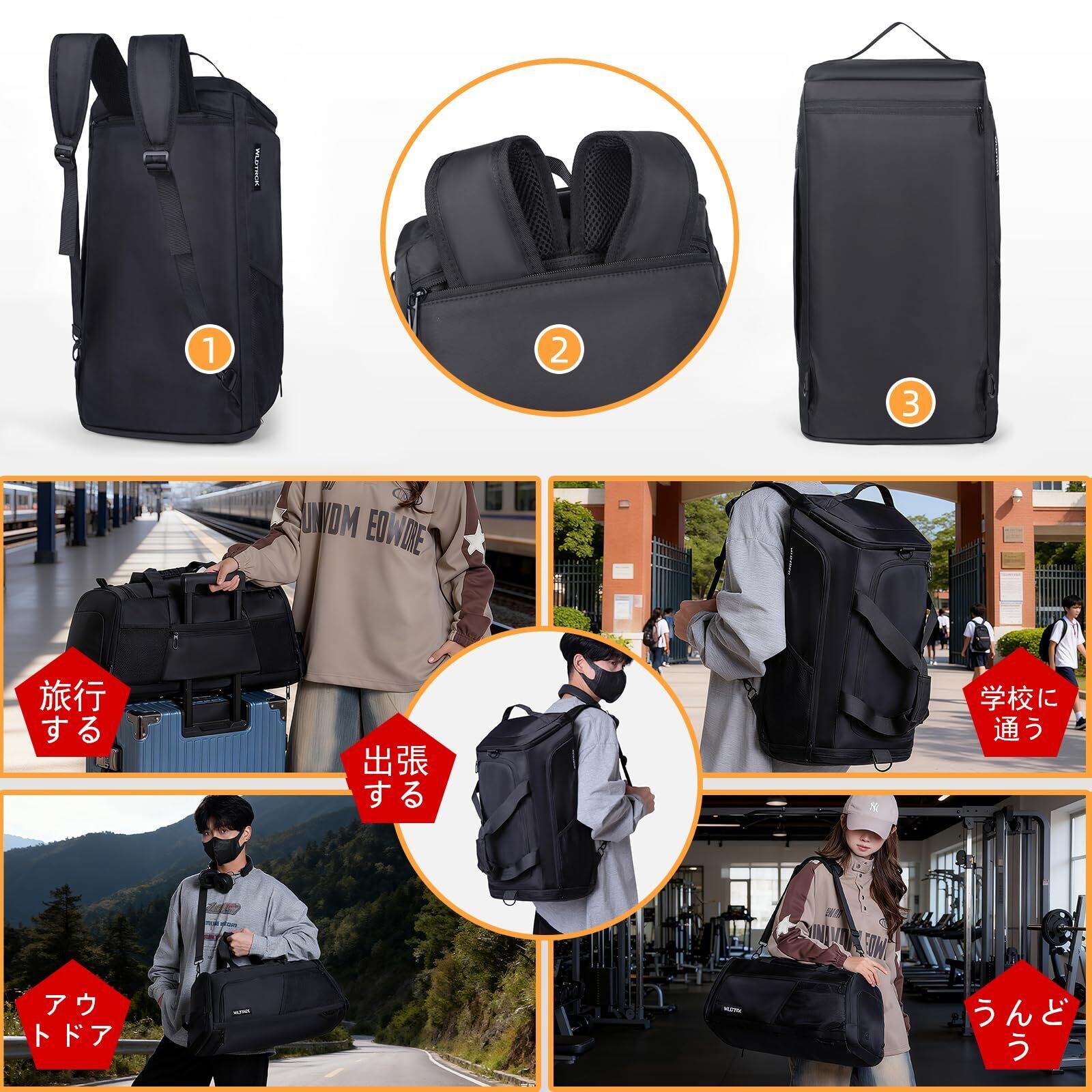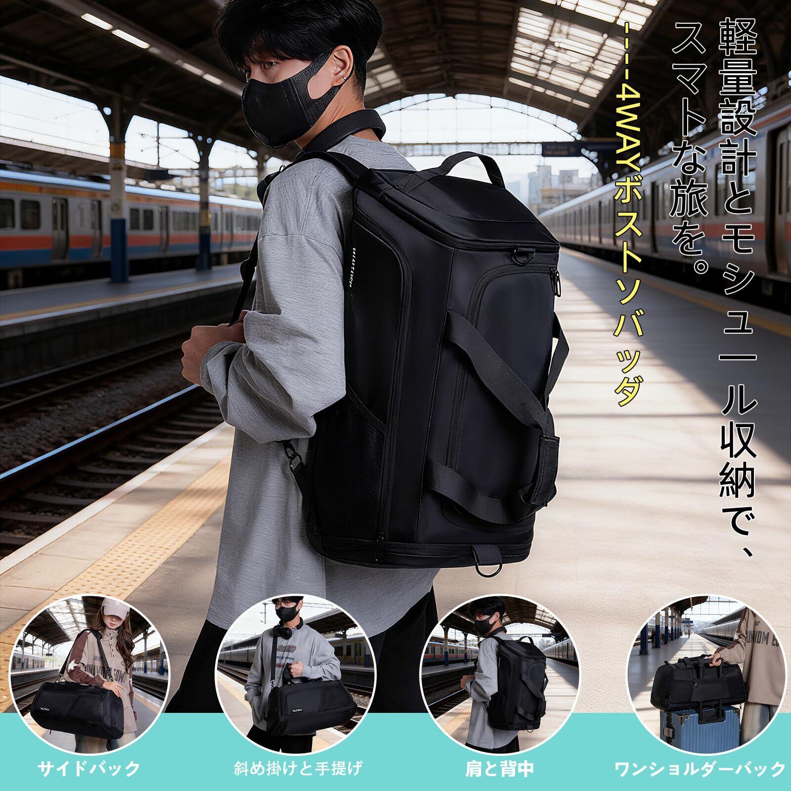 ボストンバッグ 40L 4WAY リュック大容量 防水 メッセンジャー キャリーオン メンズ レディース スポーツ ジム ゴルフ キャリーケースに乗せる 機内持ち込み カバン 旅行 入院 1泊 一泊二日 2泊3日 (01ブラック)
